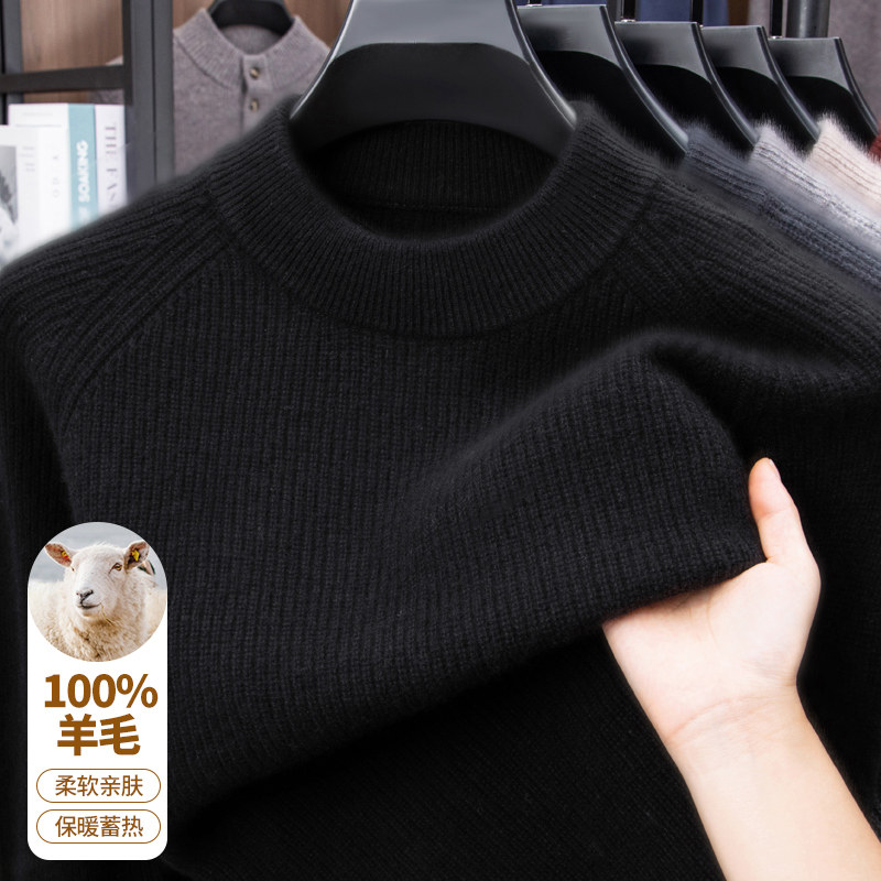 淘恒源祥羊毛衫男100纯羊毛打底针织衫秋冬中年男士半拉链羊绒毛衣