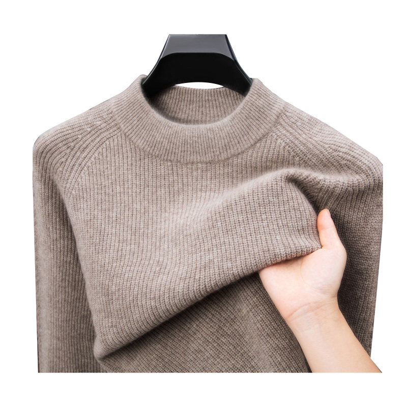 秋冬新款100%纯山羊绒衫男士半高拉链保暖中青年大码针织套头毛衣