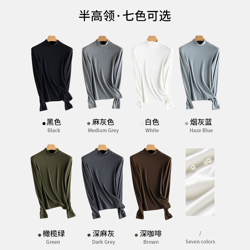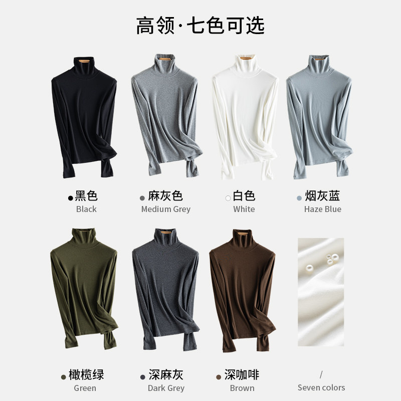 淘宝秋冬正品保暖发热珍珠山羊绒棉长袖半高领打底衫女上衣修身T恤白