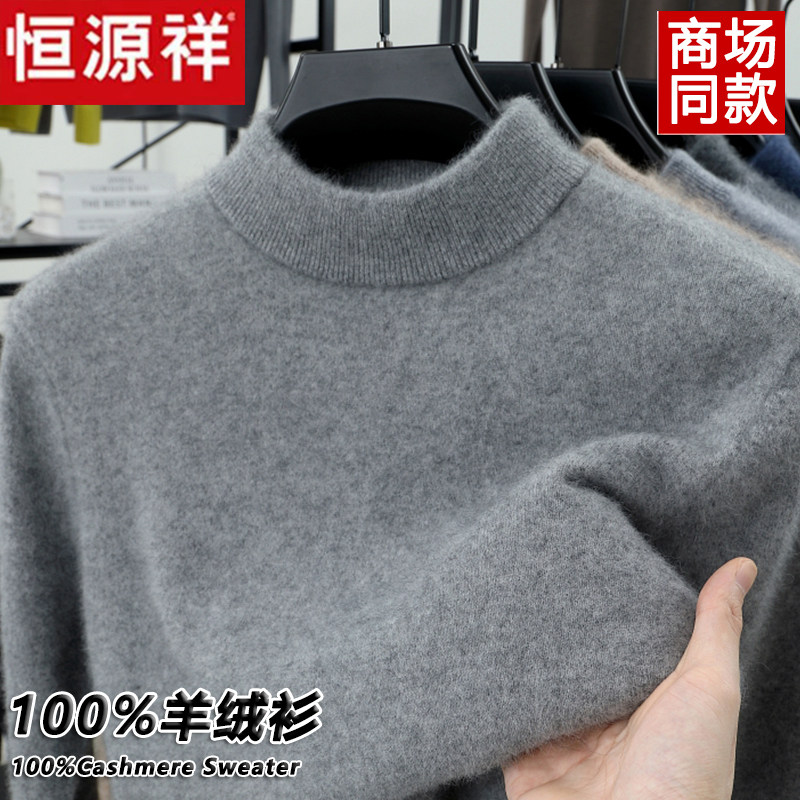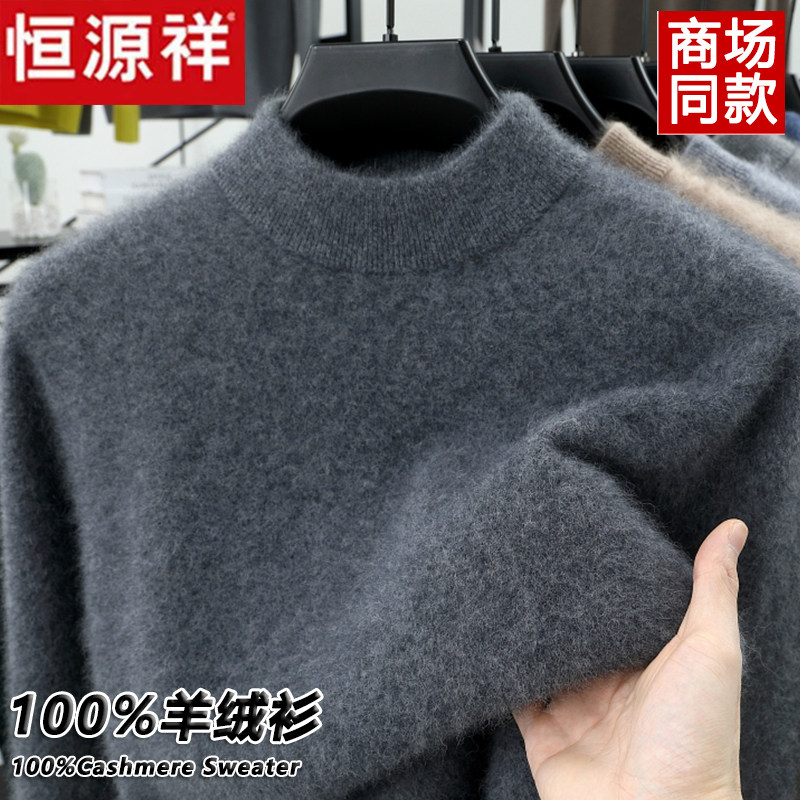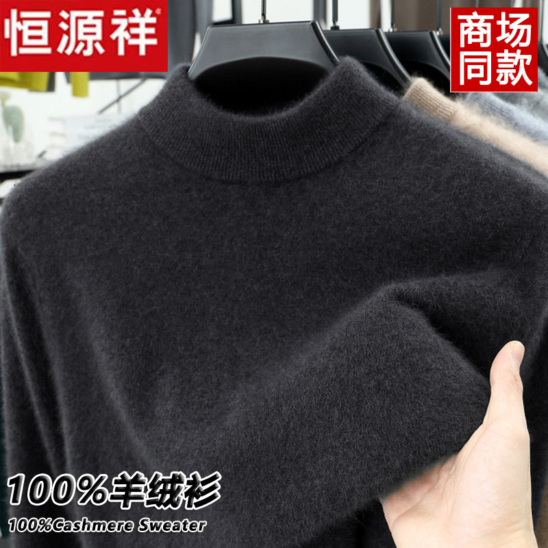 淘宝恒源祥100%纯羊绒衫男士加厚半高领保暖毛衣冬季针织打底羊毛衫男