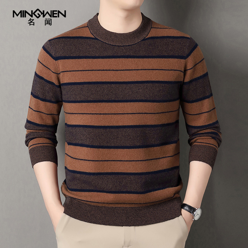 100%纯羊毛衫圆领男士套头毛衣宽松打底针织羊绒衫大码春秋季新款