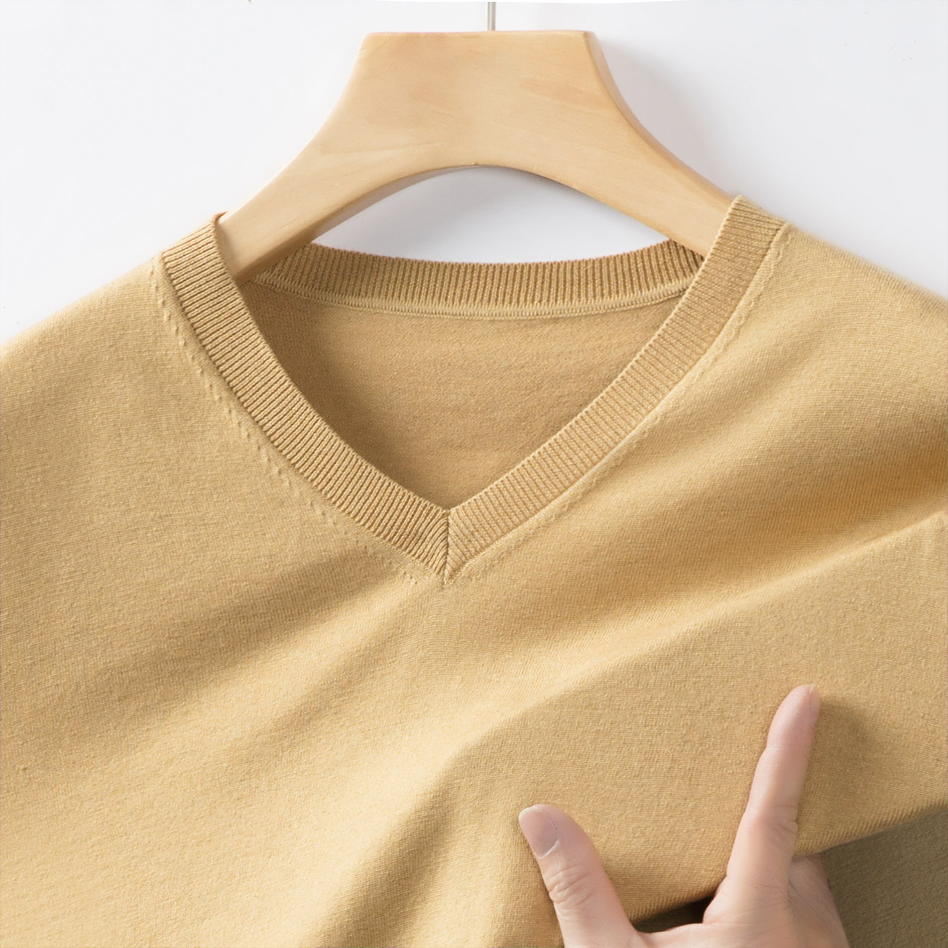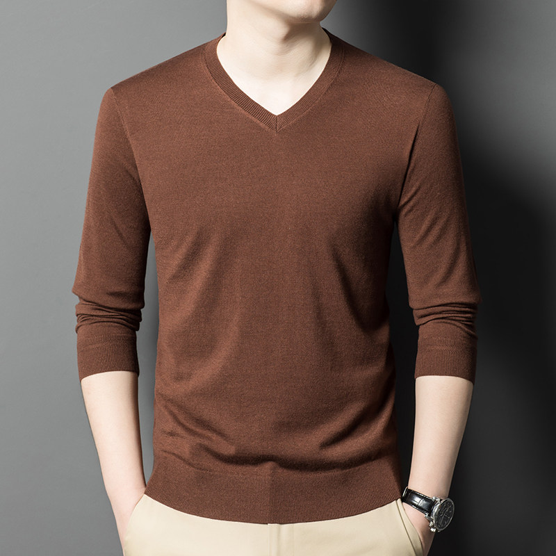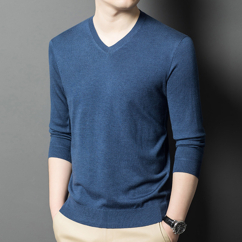 淘宝【柔滑贴身】高支高密薄款V领羊绒衫男柔软鸡心领羊毛衫针织毛衣