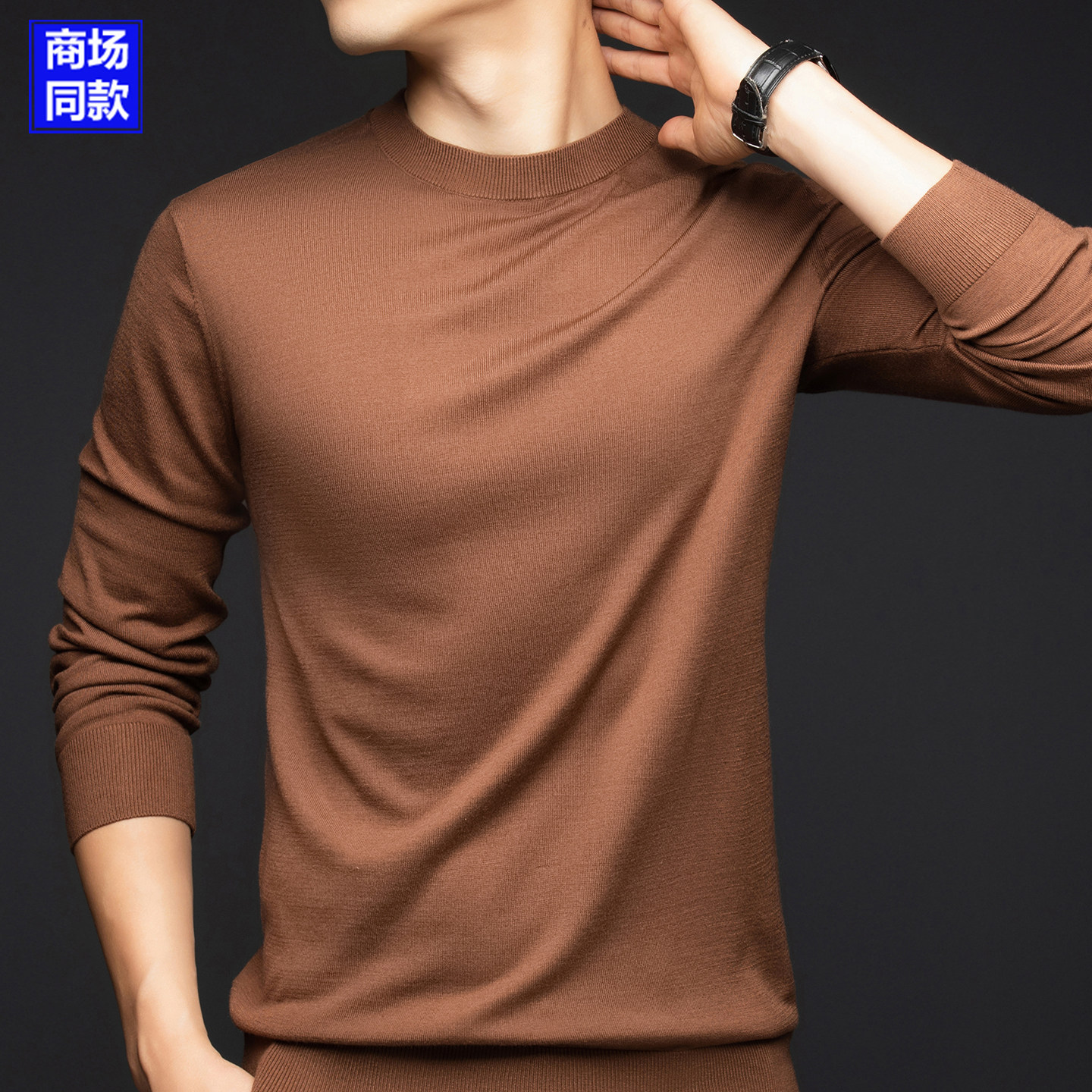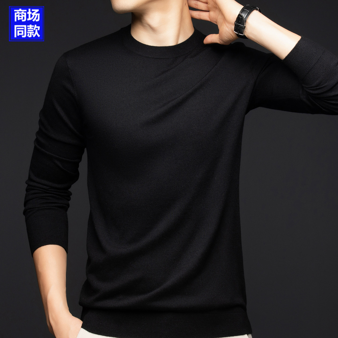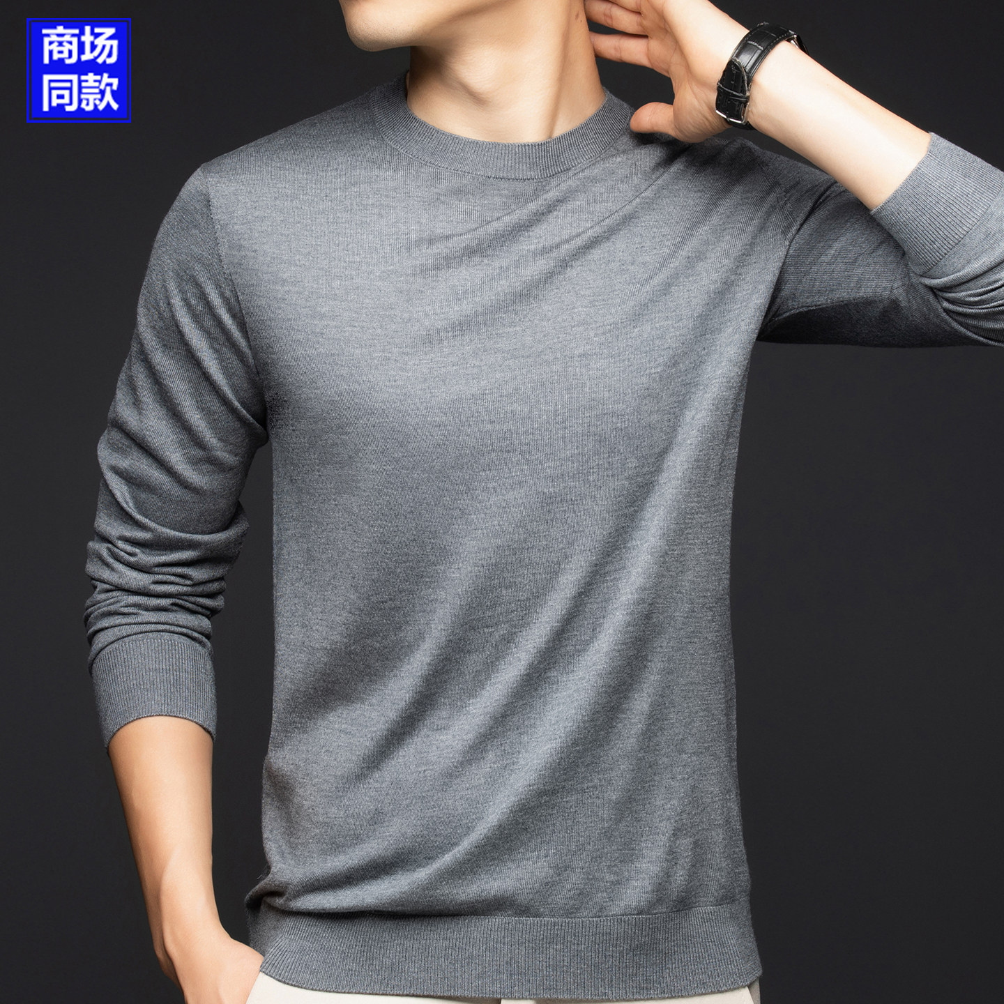 淘宝桐乡濮院可机洗羊绒衫薄款精纺羊毛衫男士圆领品牌打底衫毛衣春秋
