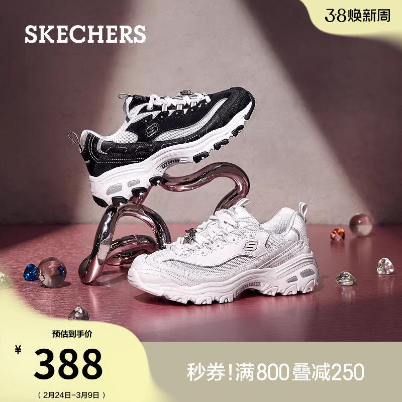 天猫斯凯奇春季女鞋熊猫鞋老爹鞋休闲鞋厚底增高鞋印花时尚百搭运动鞋