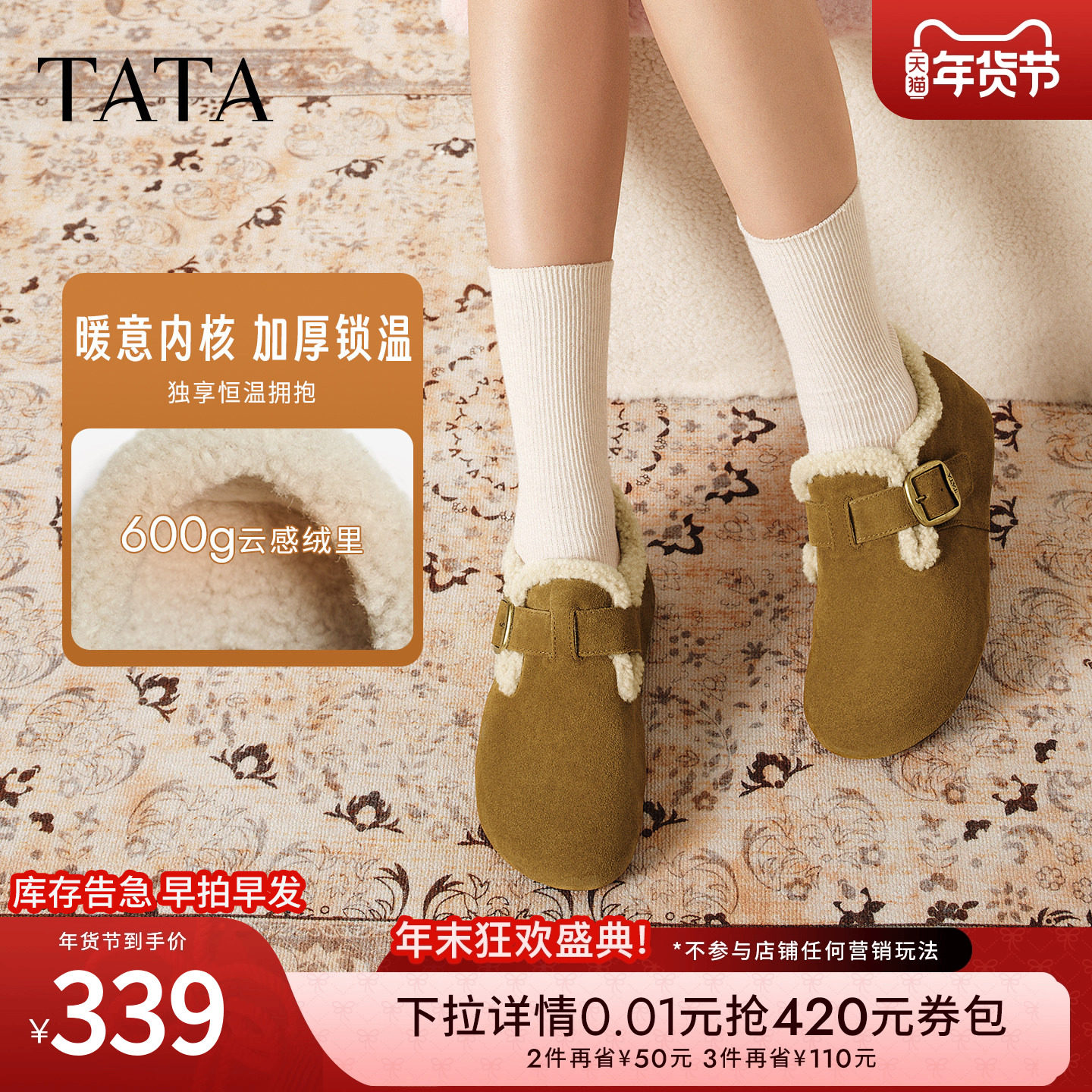 天猫TATA他她栗子勃肯鞋女鞋新款加绒厚底休闲鞋毛毛棉拖鞋子4UL02DH5