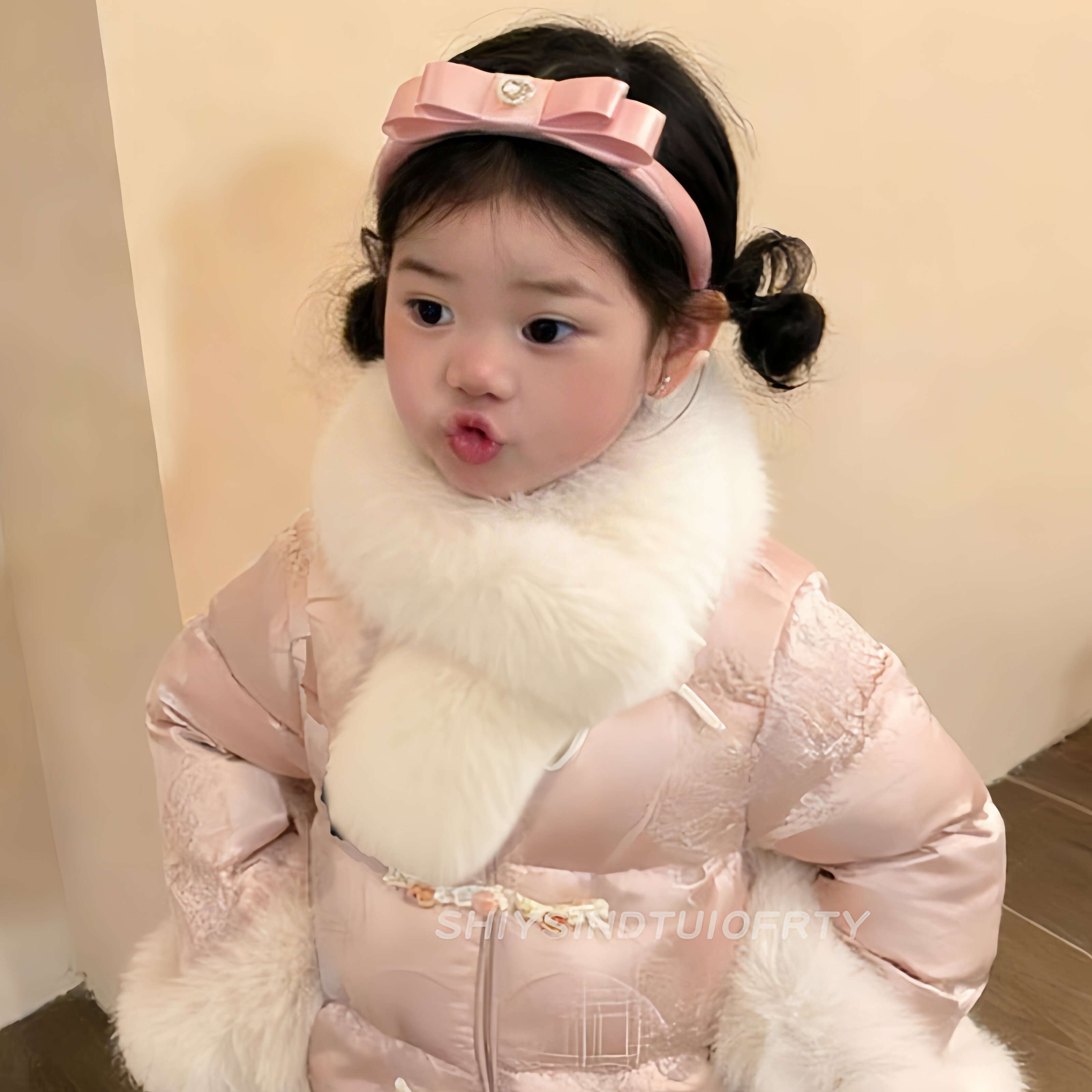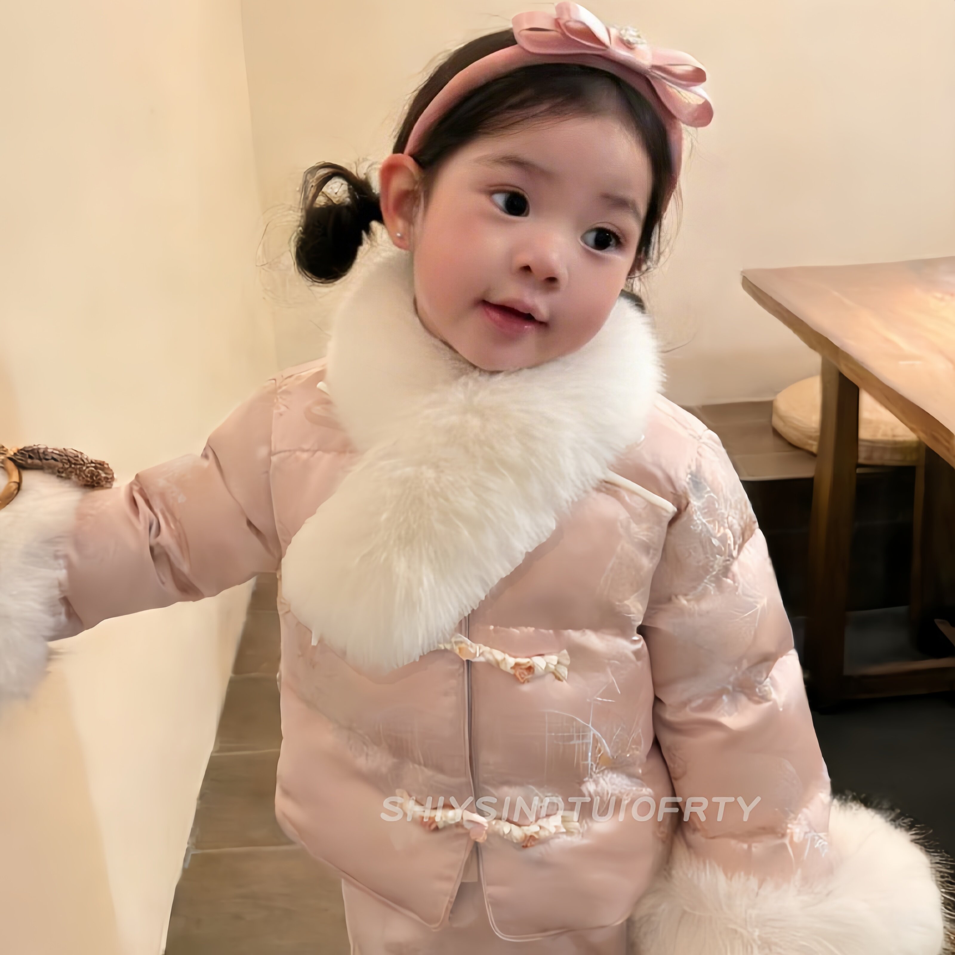 天猫儿童国风米白仿狐狸毛毛领冬季女童保暖围巾宝宝汉服棉服围脖配饰