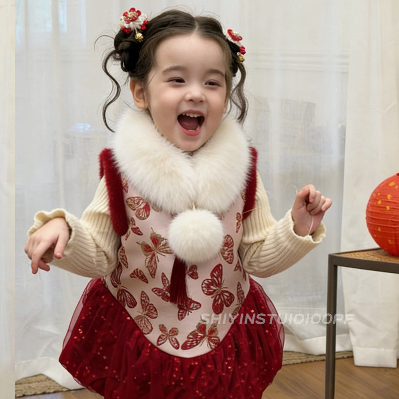 天儿童仿雪貂绒毛毛领子冬季宝宝保暖围巾配汉服旗袍小围脖新年配饰