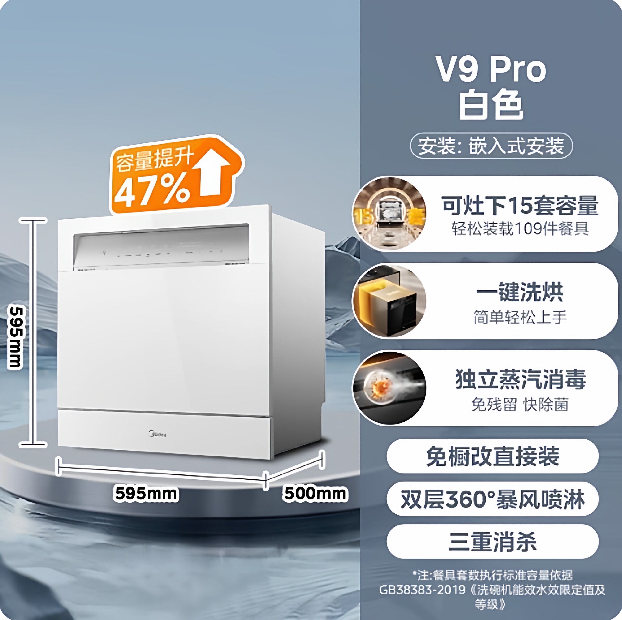 美的V9Pro/T7Pro灶下式洗碗机是一款专为中式厨房设计的全自动家用洗碗消杀毒烘干一体机。采用嵌入式灶下安装设计,节省空间,适配多种橱柜布局。搭载高温高压喷淋系统,强力去污,配合三重过滤技术,有效防止残渣回流。内置UV紫外线+高温双重杀菌,除菌率高达99.99%,保障餐具卫生。配备智能热风烘干功能,快速干燥内壁与餐具,避免水渍残留。支持多种洗涤模式,智能感应油污自动调节水量与时长,节能省水。操作简便,触控面板清晰直观,运行时低噪音,提升厨房使用体验。美的V9Pro/T7Pro集洗涤、消毒、烘干于一体,是现代家庭健康洁净生活的理想之选。