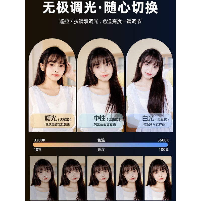 SHiTAK视塔克 直播补光灯 2700K-6500K无极调光 专业级柔光设备 人像补光灯摄影灯三档亮度调节直播间柔光灯