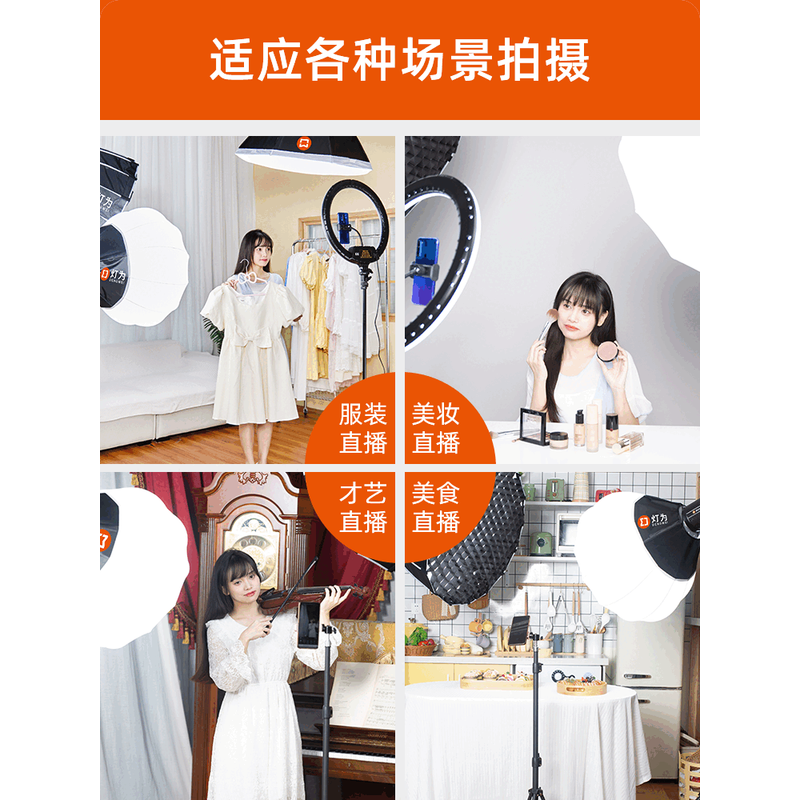 天虞光直播补光灯主播专用球形灯专业网红美颜摄影深抛打光专用拍照室内服装美食直播间拍摄灯光柔光箱设备全套