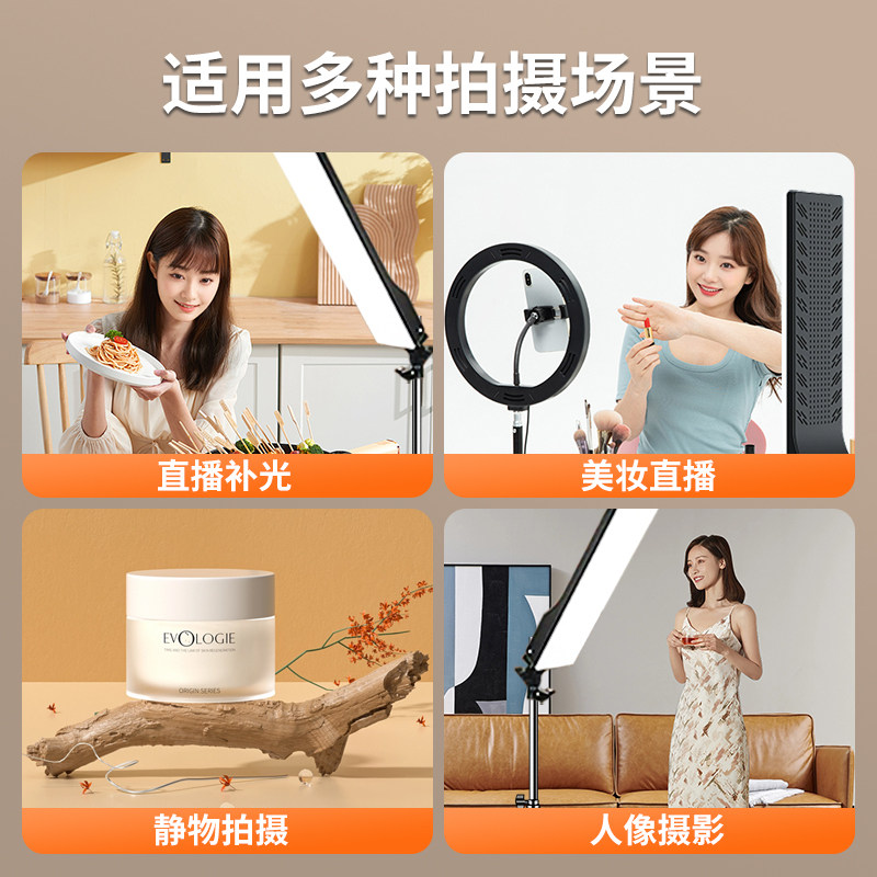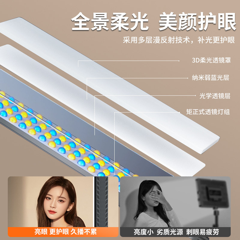 天猫长条直播补光灯主播头顶打光专用直播间led摄影顶灯美颜柔光方形平板灯光拍照室内专业静物珠宝拍摄影室设备