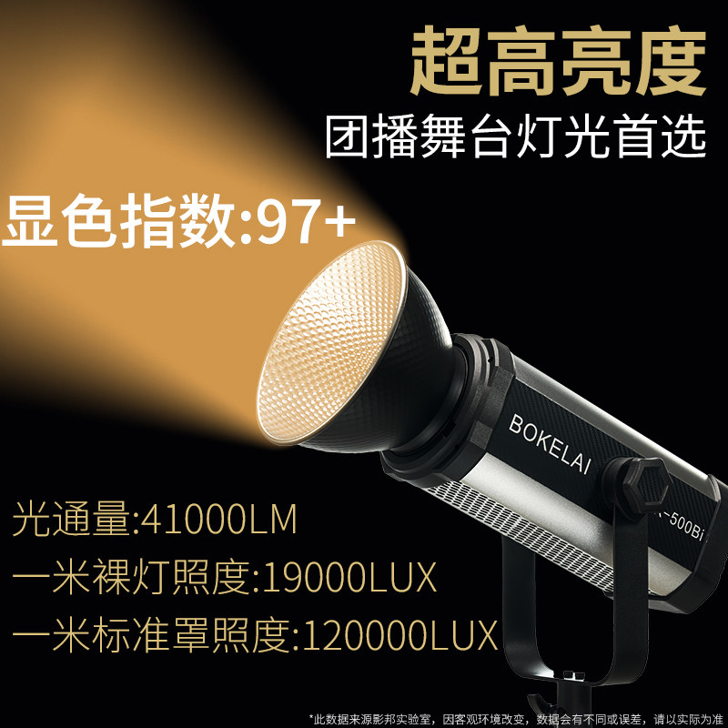 影邦BK500W大功率直播补光灯专为专业主播、摄影师及内容创作者设计,适用于人像、服装、美食等多种拍摄场景。采用高亮度LED灯珠,功率高达500W,光线充足且均匀,有效提升画面质感。配备专业柔光罩,光线柔和自然,避免生硬阴影,真实还原肤色与色彩。支持色温调节(3200K-5600K)与无级调光,满足不同环境需求。铝合金机身坚固耐用,散热性能优异,长时间直播稳定运行。兼容标准灯架,安装便捷,适用于室内影棚、直播间等场景。影邦BK500W以其卓越的光效与稳定性,成为专业级直播与摄影的理想补光选择。