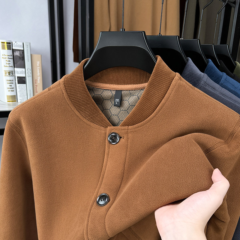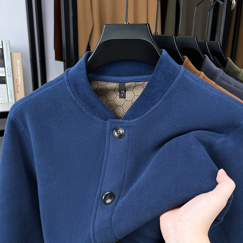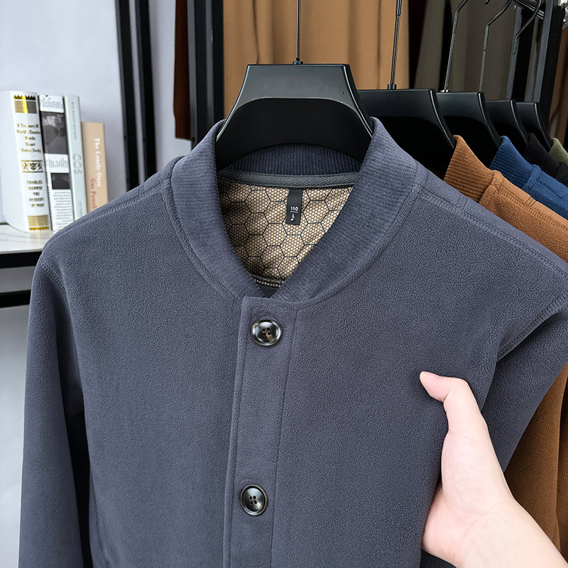 淘宝摇粒绒双面绒卫衣开衫男外套立领纽扣加厚保暖夹克男秋冬季棒球服