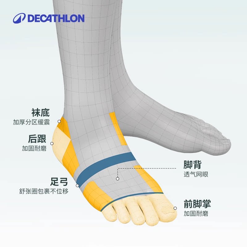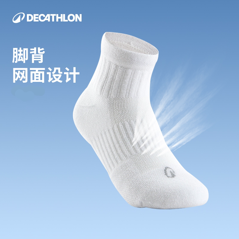 天猫【两件包邮】迪卡侬儿童春夏透气运动袜羽毛球网球跑步棉袜KIDO