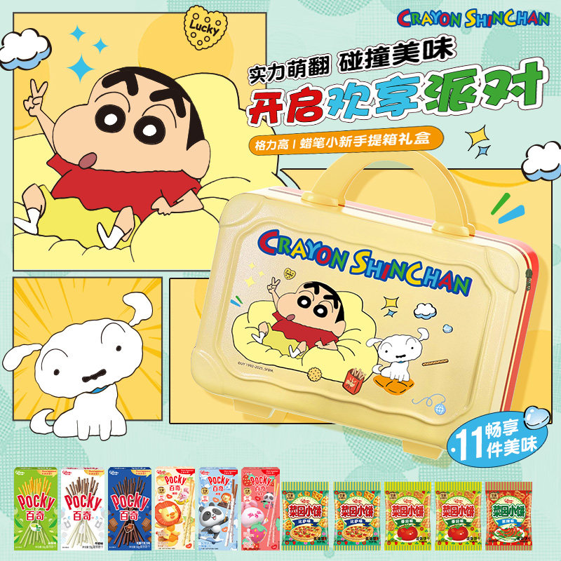 天猫格力高饼干礼包510g/蜡笔小新礼盒570g零食小吃手提行李箱保温杯