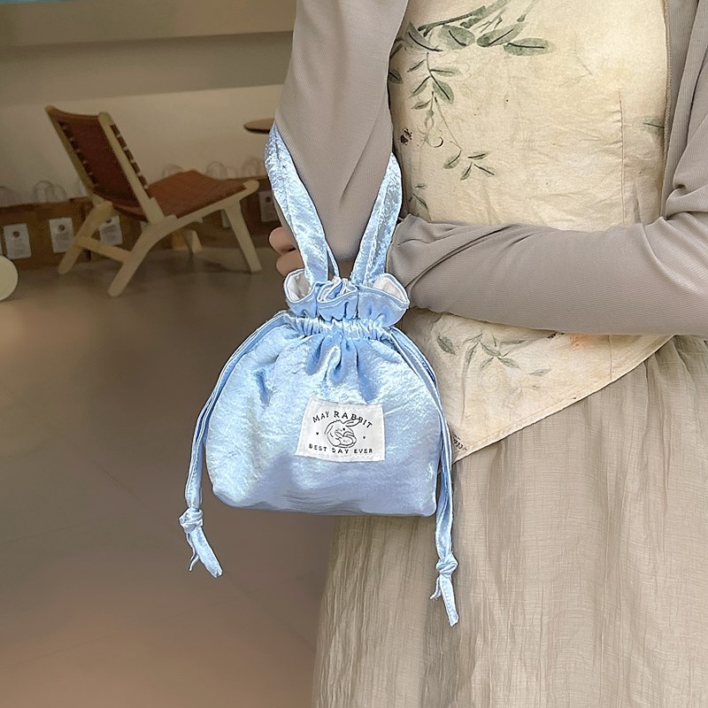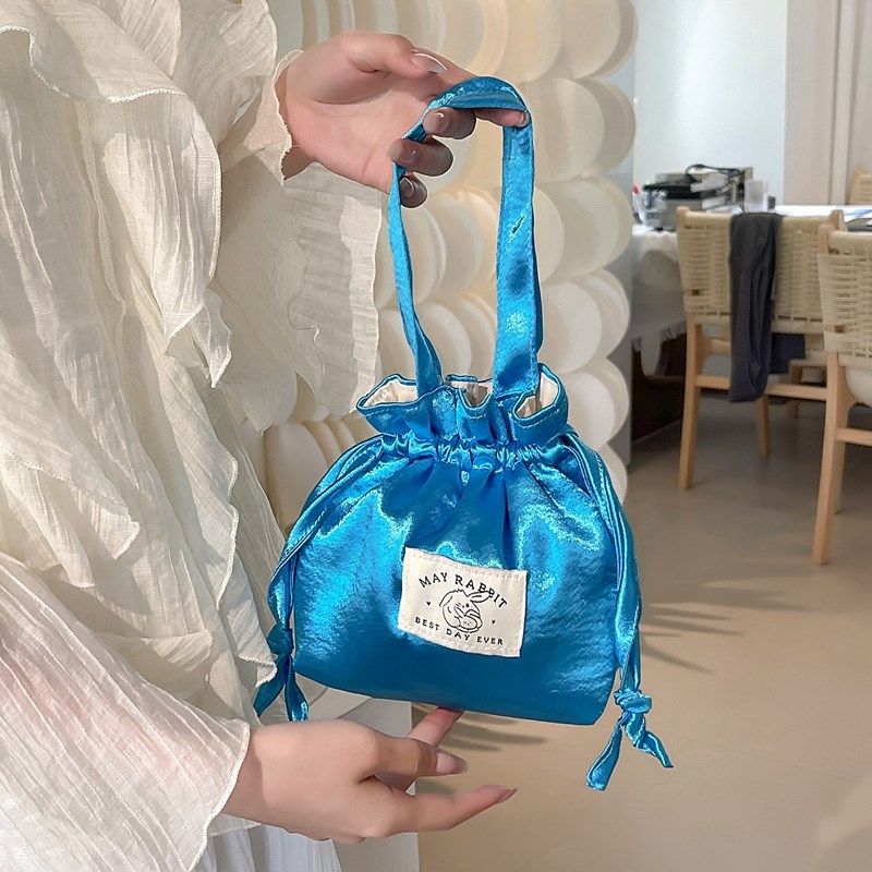 淘宝复古国风缎面抽绳手拎包文艺气质束口手提帆布包大容量.首饰收纳