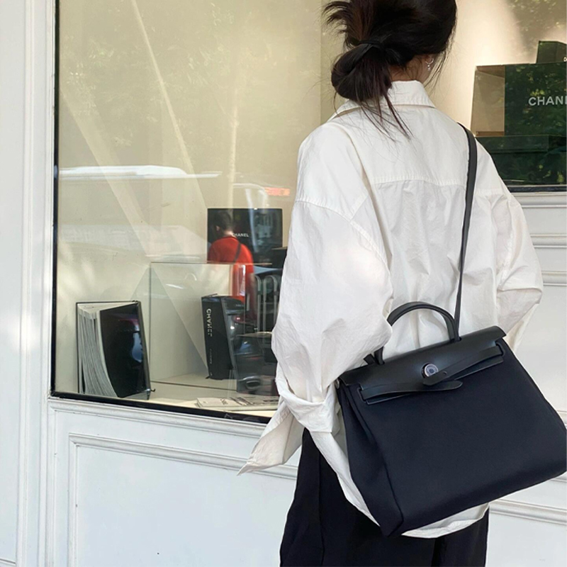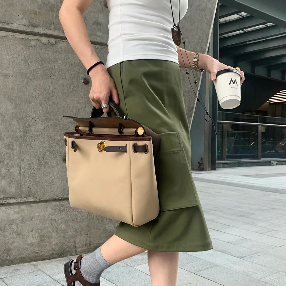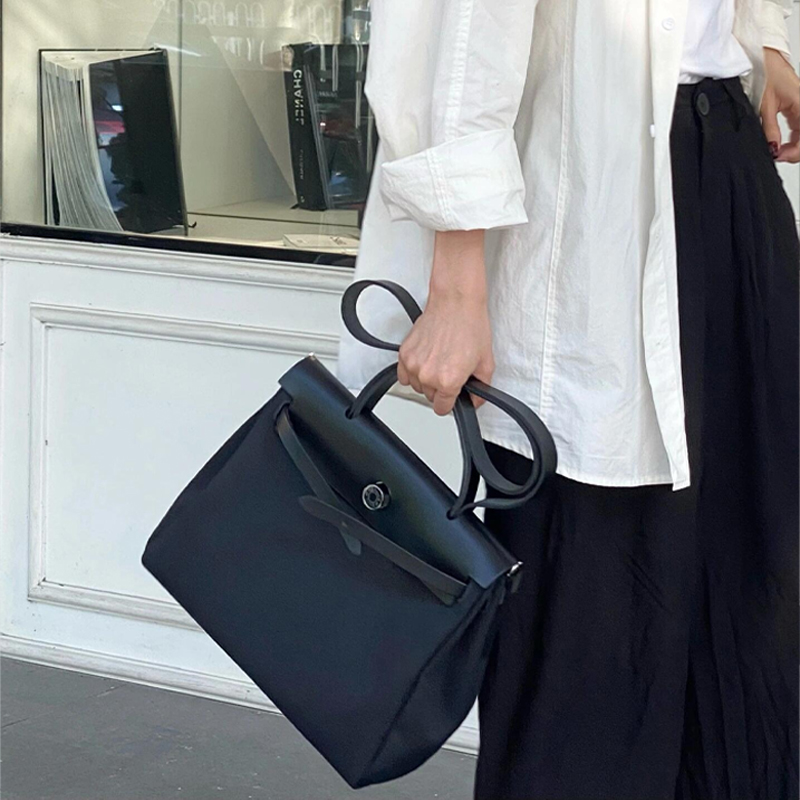 淘宝进口帆布/牛皮内缝herbag凯莉包手提单肩复古女包法棍腋下包mini