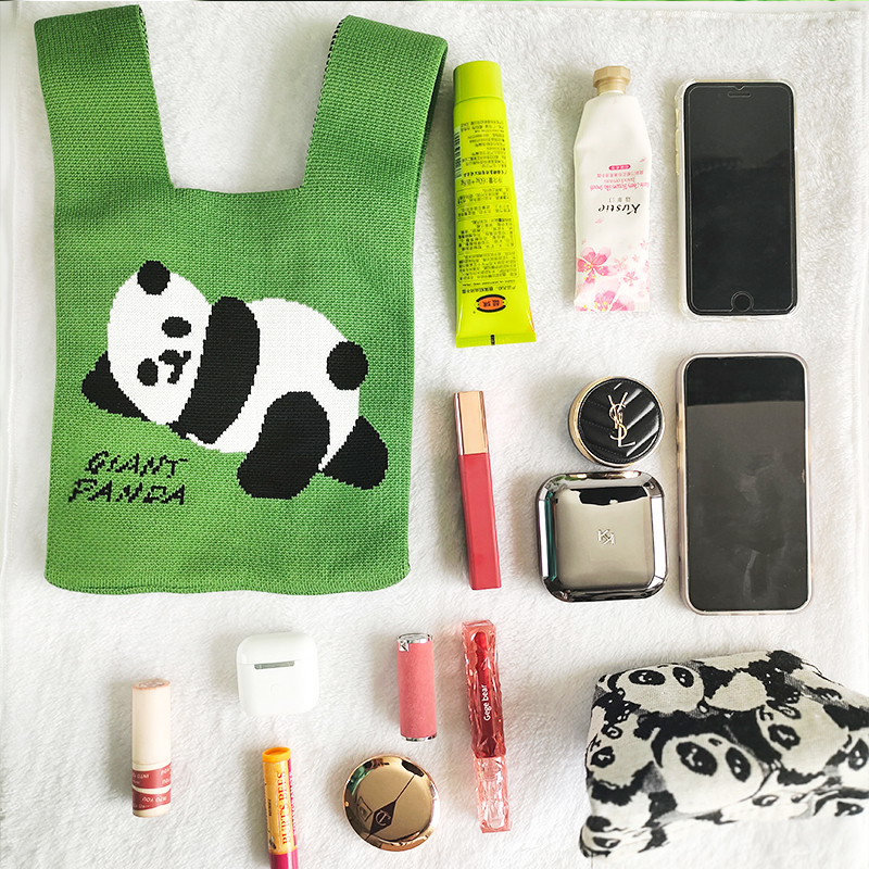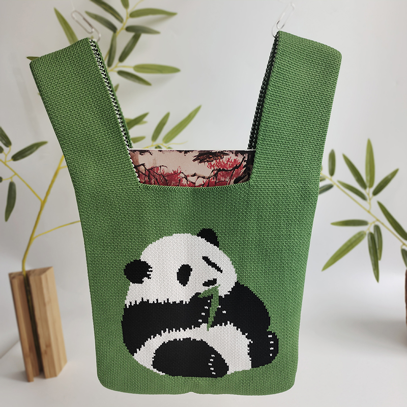 淘宝熊猫手提袋成都网红爷爷小熊包包购物显眼便当袋手提包弹力针织袋