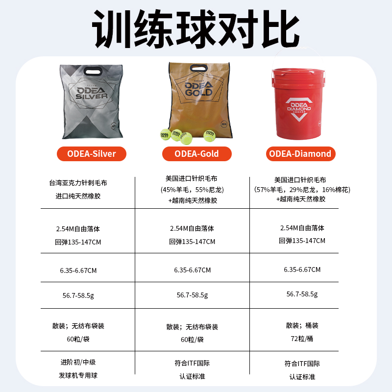 天猫欧帝尔网球Gold专业Silver款Diamond训练球高回弹ROSE无压散网球