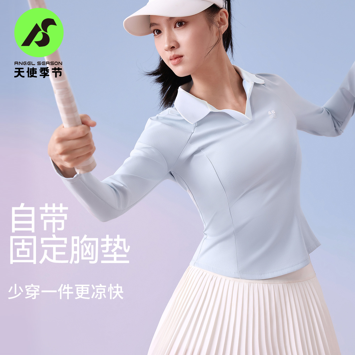 天猫天使季节羽毛球服女秋冬速干运动polo衫绝美网球服长袖上衣服t恤
