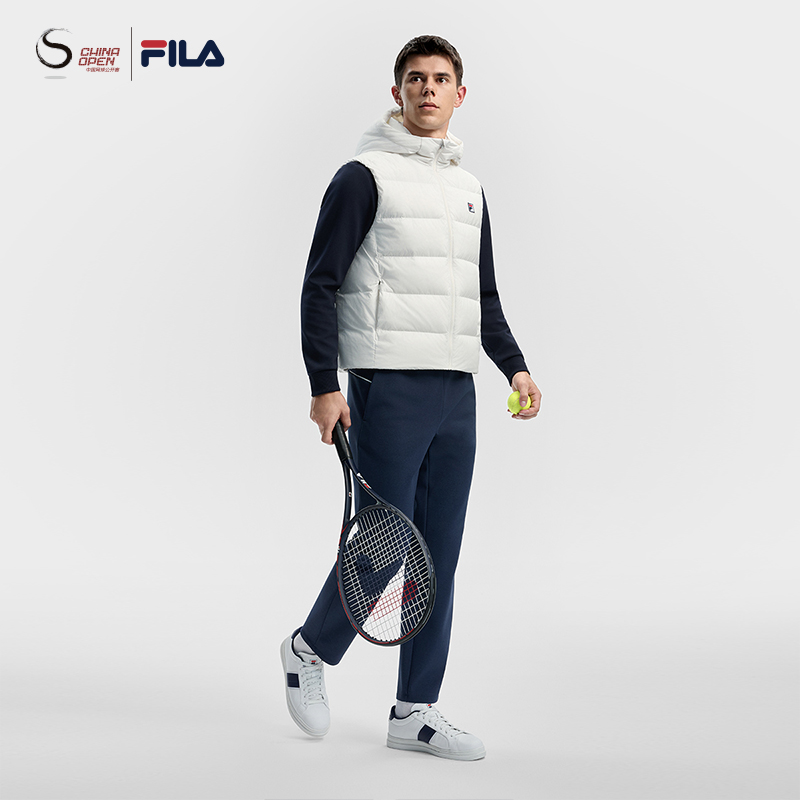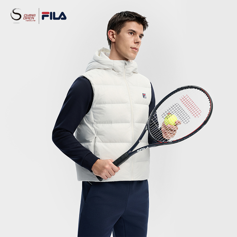 淘宝FILA 斐乐官方男士羽绒马甲2025冬新款网球运动基础保暖连帽外套