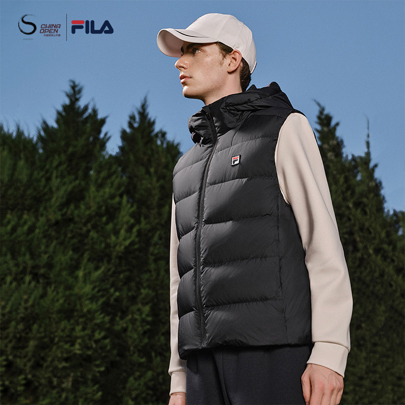 天猫高蓬鹅绒FILA斐乐网球系列男士羽绒马甲冬季新款运动保暖羽绒外套