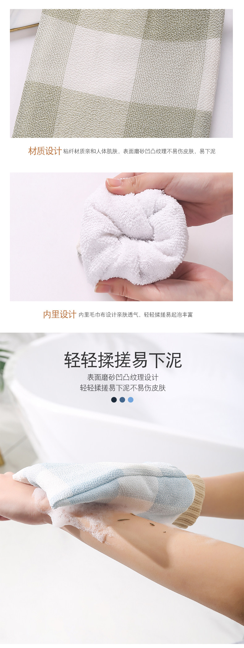这款加厚搓澡巾采用优质纤维材质,双面设计,一面细腻磨砂,温和去角质;一面粗颗粒加厚搓灰层,强力去除死皮和污垢,适合男女通用。贴合手型的手套式设计,方便抓握,轻松搓背不求人,沐浴时更省力高效。亲肤透气,不易掉毛,耐用易清洗,干后柔软不板结。无论是日常清洁还是深度去泥,都能带来清爽洁净的沐浴体验,是家庭浴室必备的健康沐浴神器,让肌肤光滑细腻,焕发自然光彩。