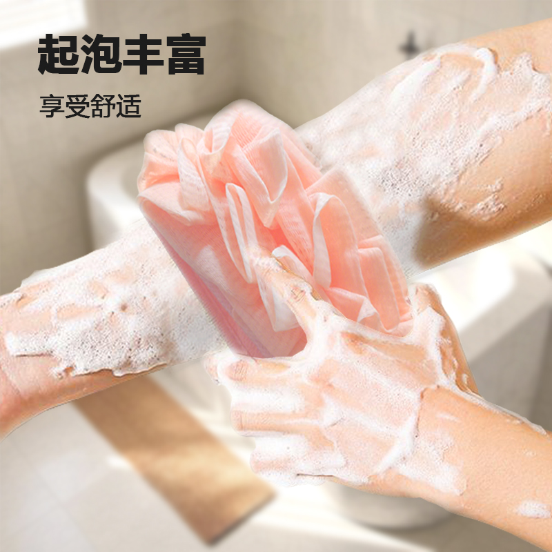 HOUYA搓澡巾是一款高效沐浴工具,双面浴花设计,兼具沐浴条和搓背巾的功能。其双面浴花能够轻松清洁身体各个部位,强力去除污垢和角质。加长浴花球的设计,更是方便用户搓洗背部等难以触及的部位。