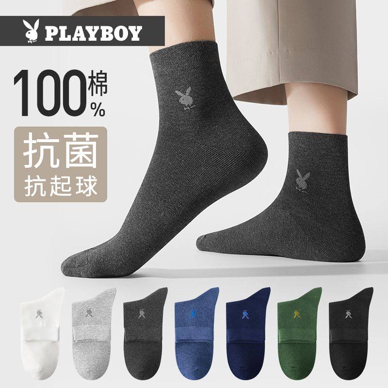 天猫花花公子纯棉男士袜子男长袜抗菌透气中筒袜防臭吸汗高档商务男袜