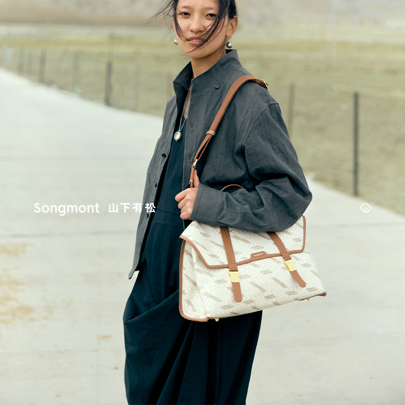 天猫Songmont山下有松山行系列老花游历公文双肩包大容量旅行电脑包女