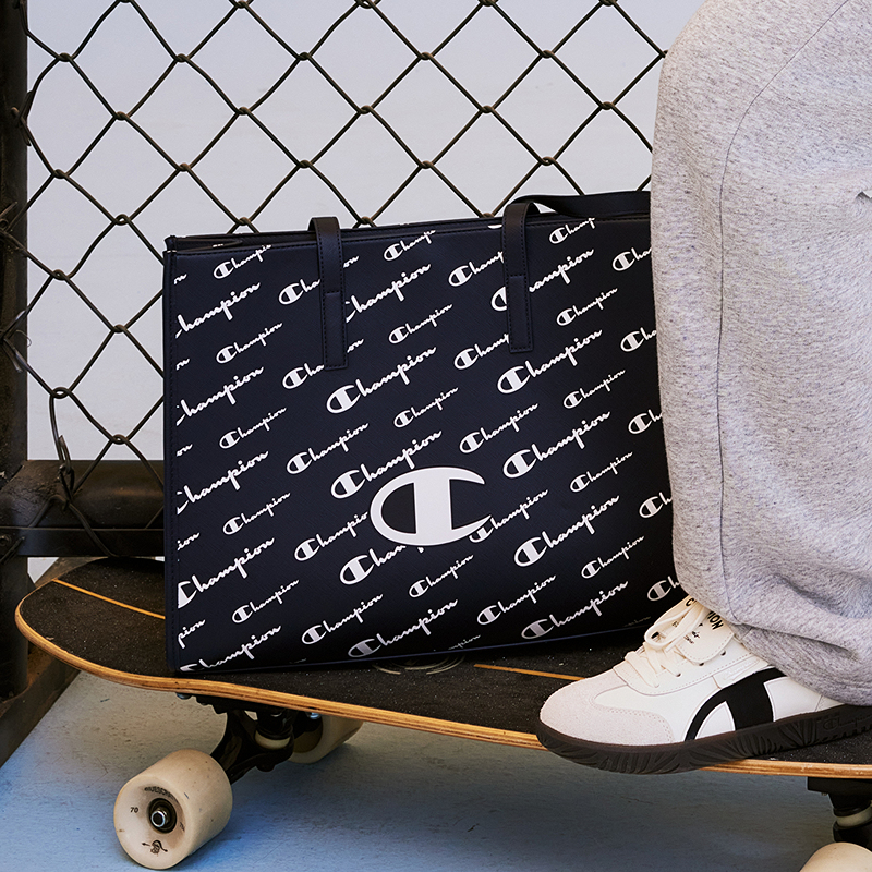天猫Champion冠军立体形托特包大容量单肩包满印老花通勤手提女包电脑