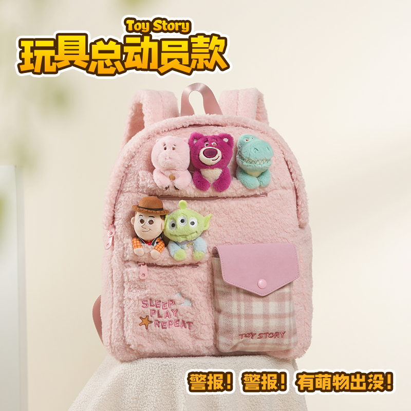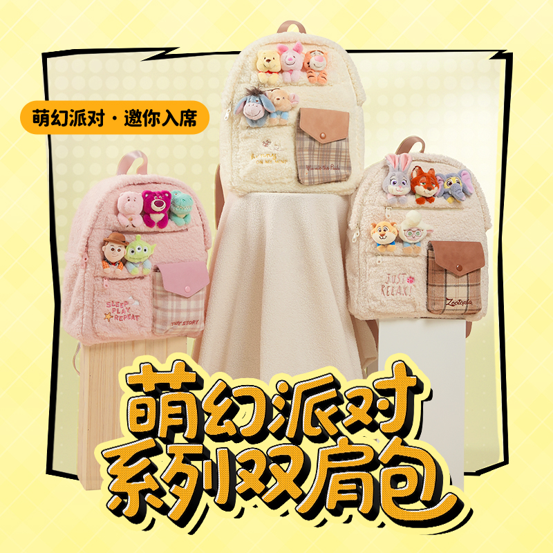 天猫迪士尼potdemiel蜂蜜罐毛绒双肩书电脑包儿童上学旅行大容量便携
