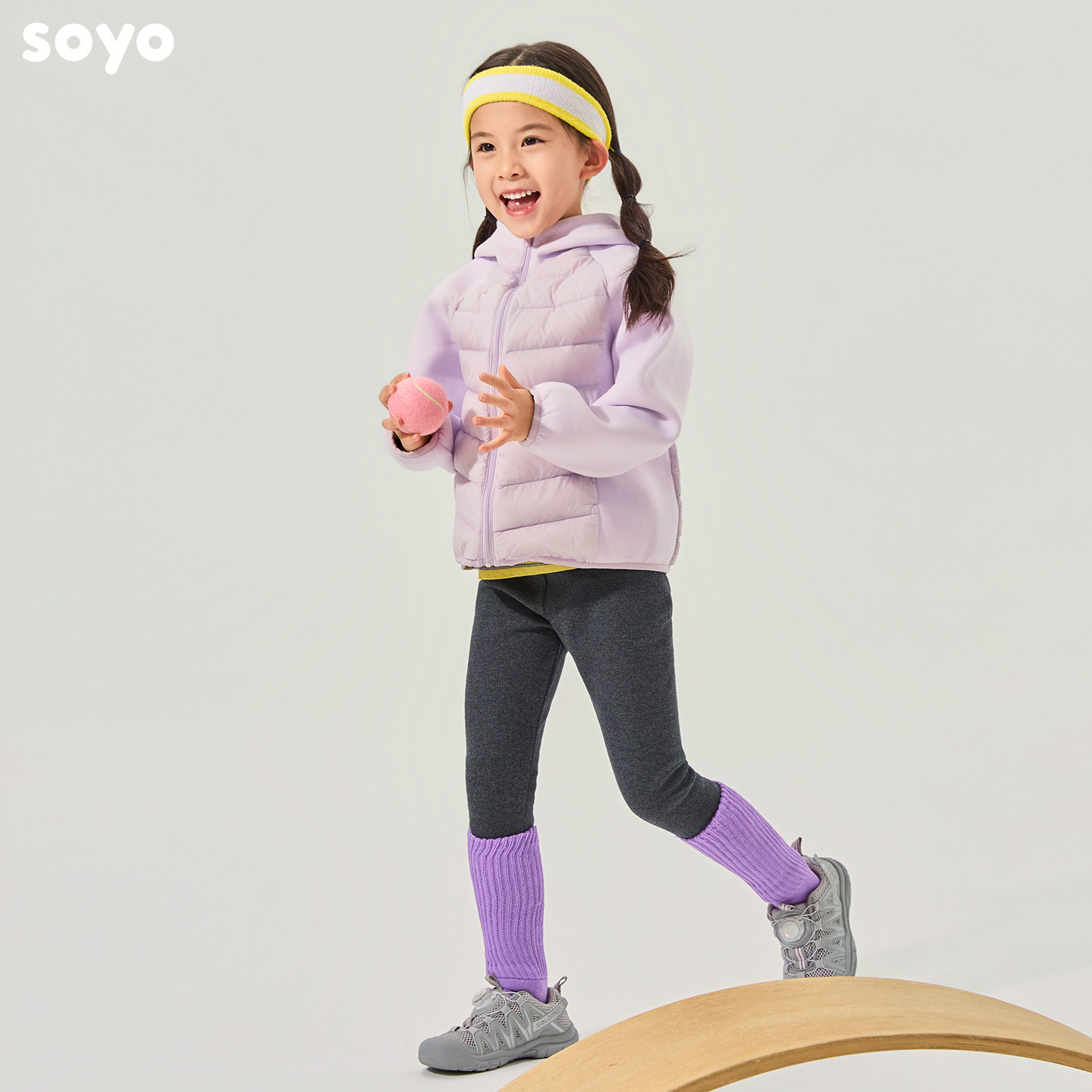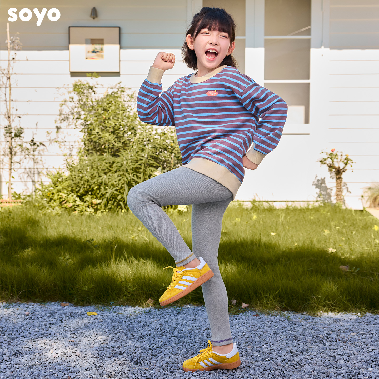 天猫舍予良仓童装罗纹弹力女童打底裤秋冬加绒撞色多巴胺外穿儿童裤子
