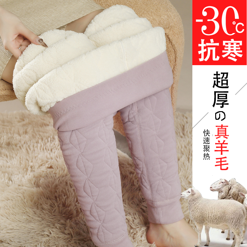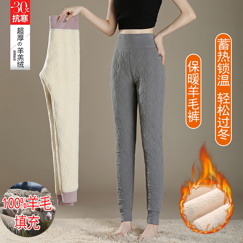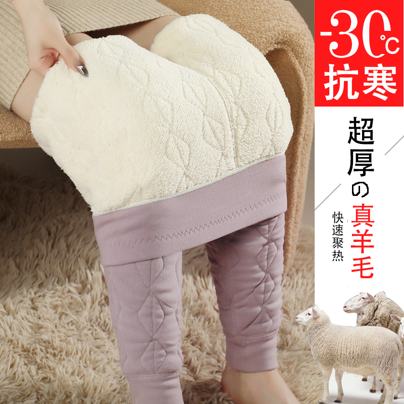 天猫羊毛保暖裤女内穿秋冬季加绒加厚棉裤东北特厚秋裤大码线裤打底裤