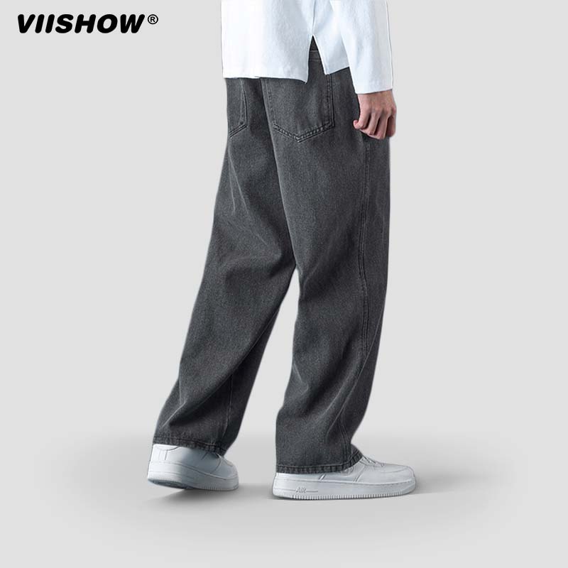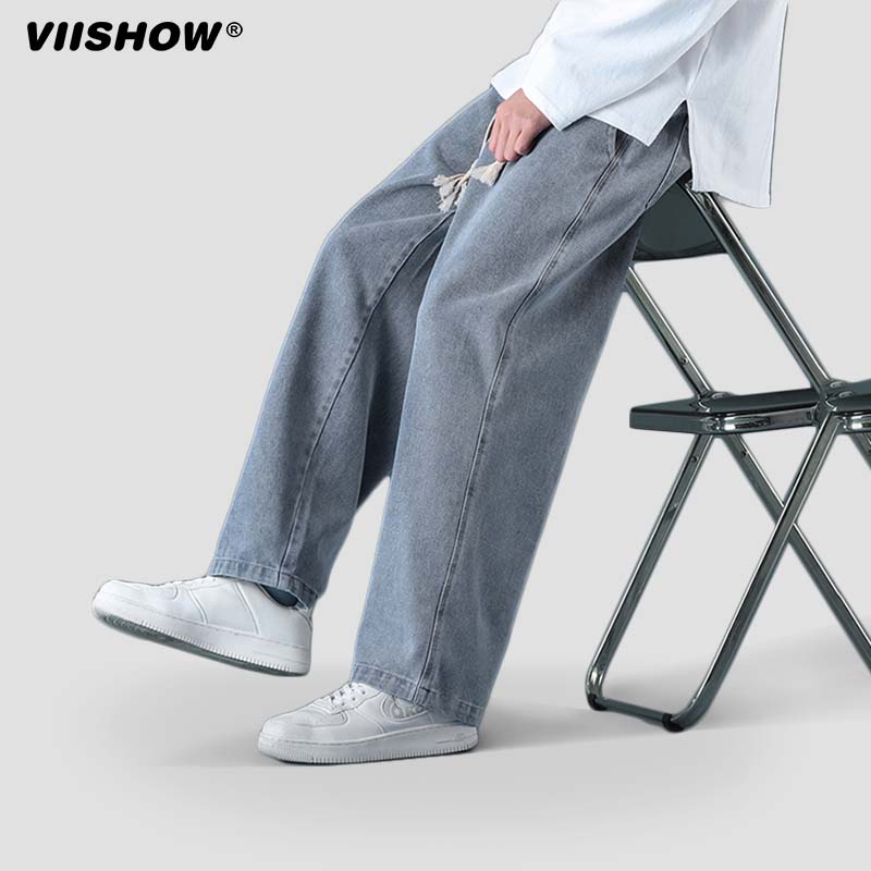淘宝VISHOW直筒牛仔裤男款春秋潮牌宽松美式高街阔腿裤港风休闲长裤子
