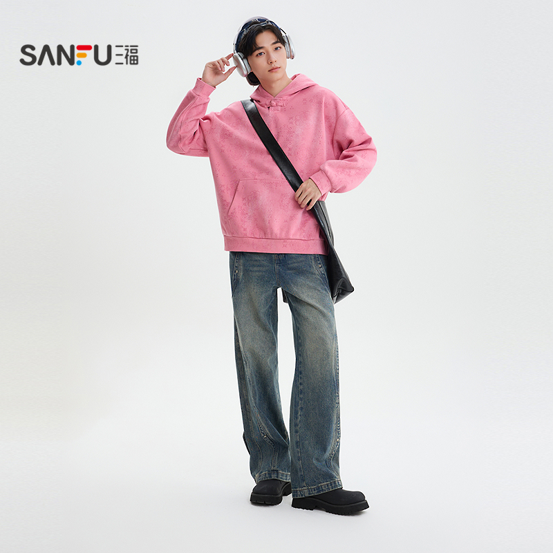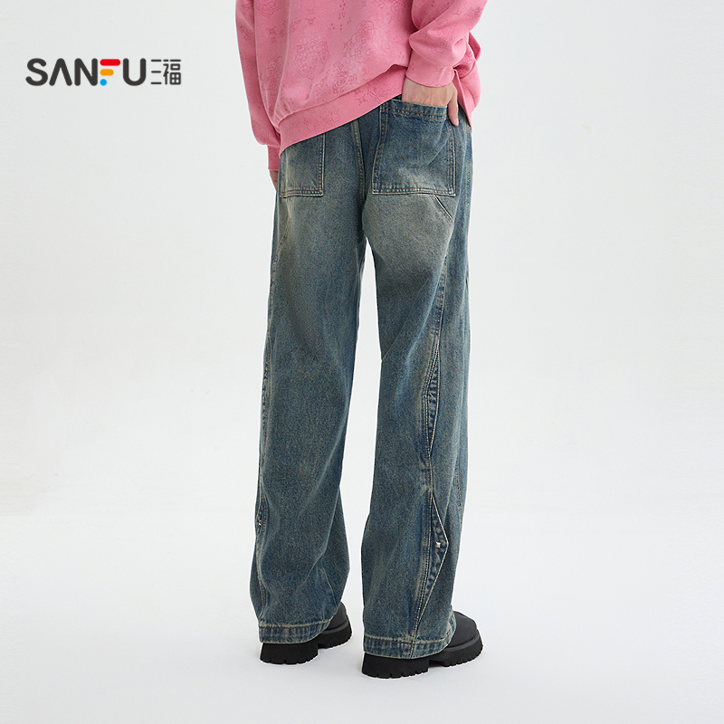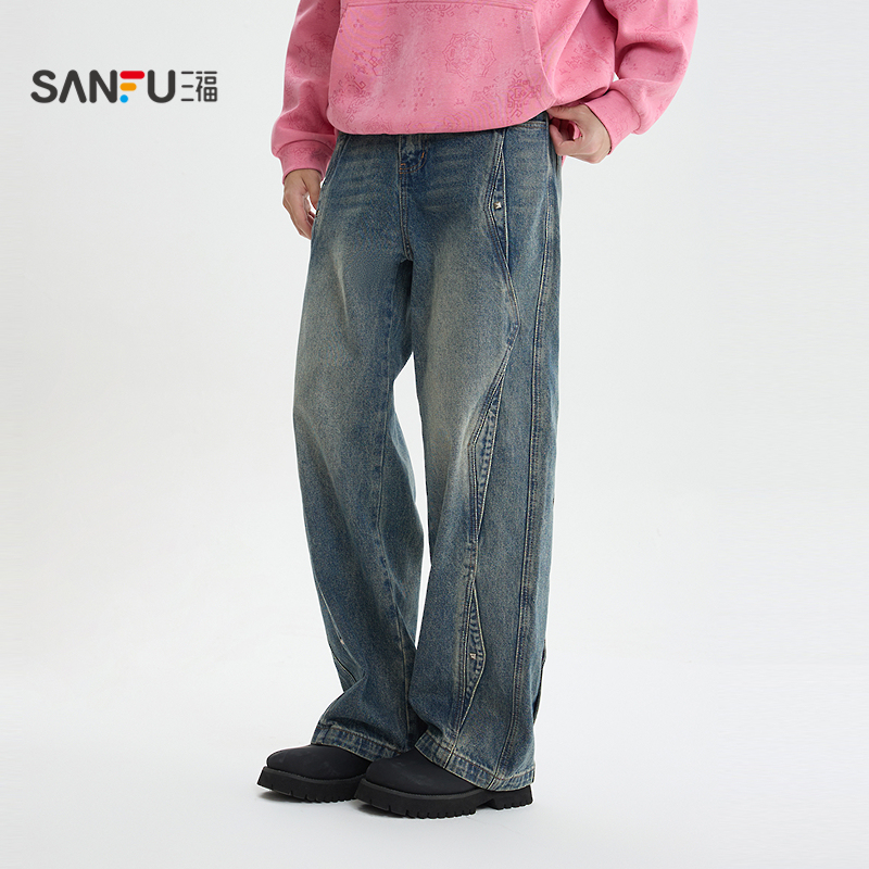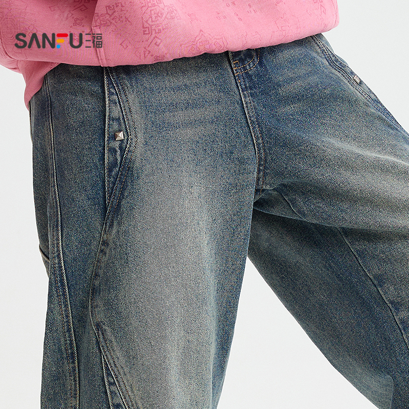 天猫三福2025冬季男士解构设计牛仔裤 街头潮酷直筒阔腿长裤510091
