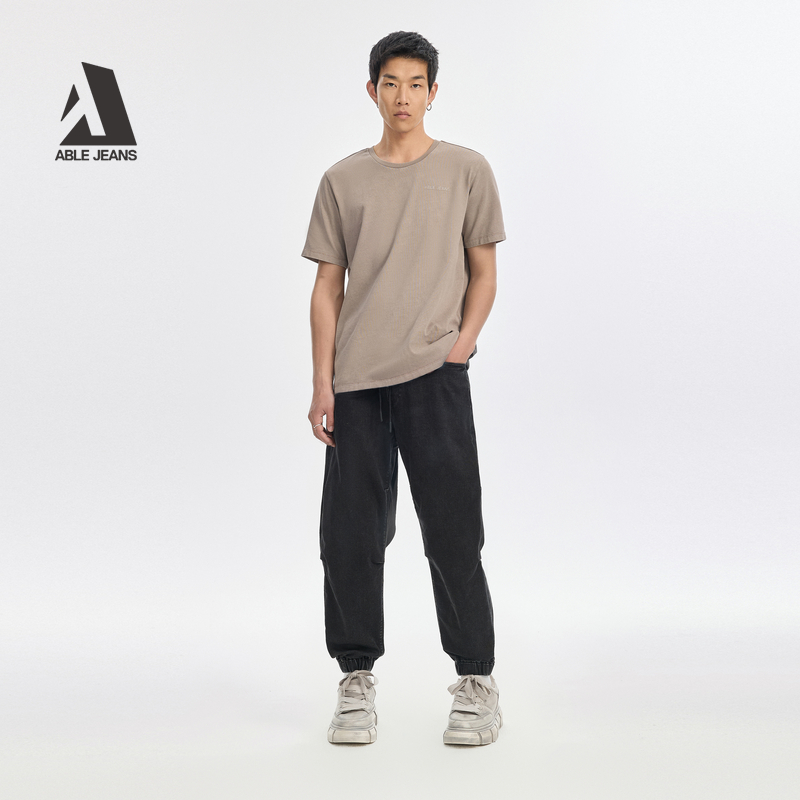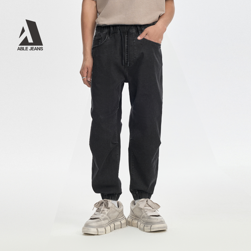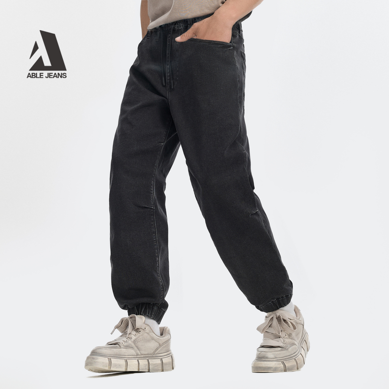 天猫ABLE JEANS【束脚滑板裤】冬季男士运动街头松紧腰加绒保暖牛仔裤