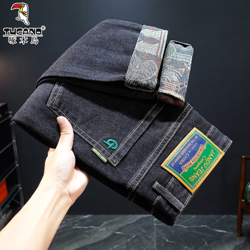 淘宝啄木鸟牛仔裤男款弹力修身小直筒欧版潮牌2025新款长裤男宽松厚款