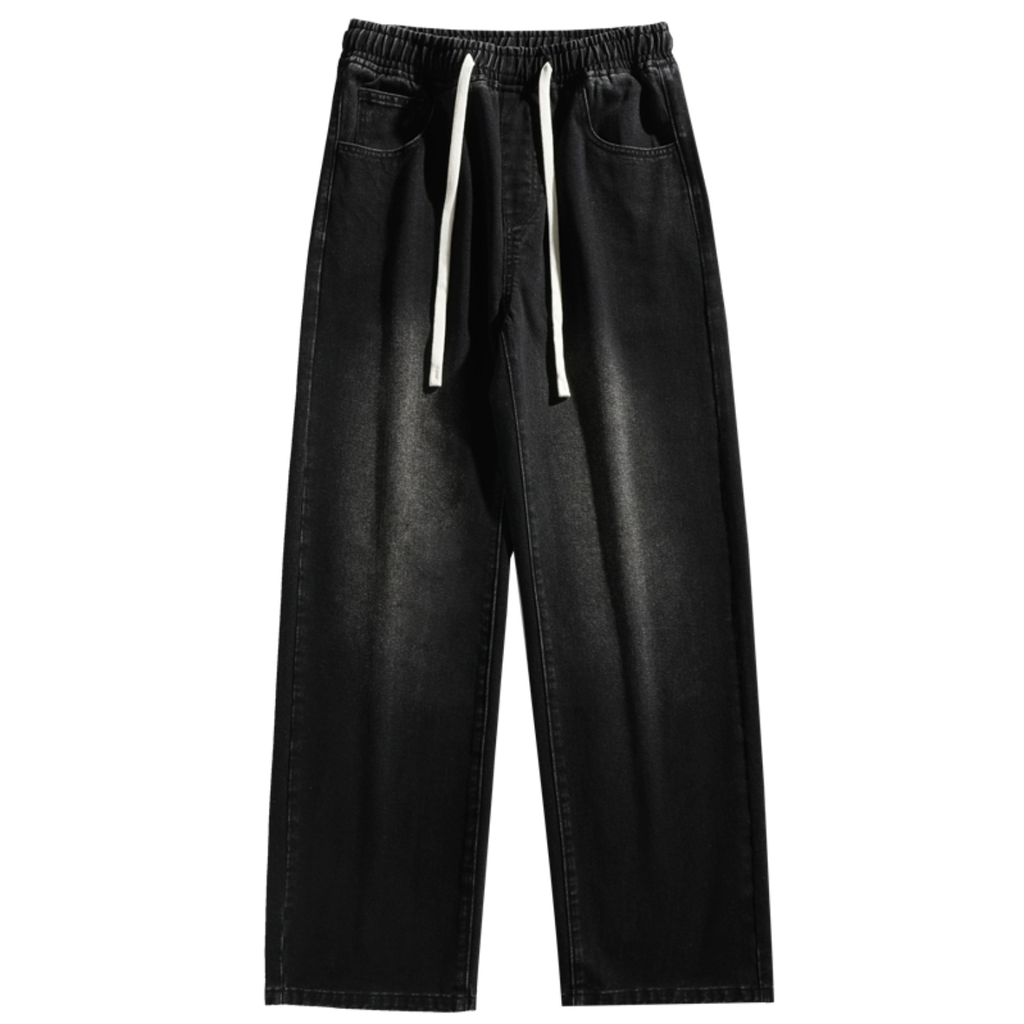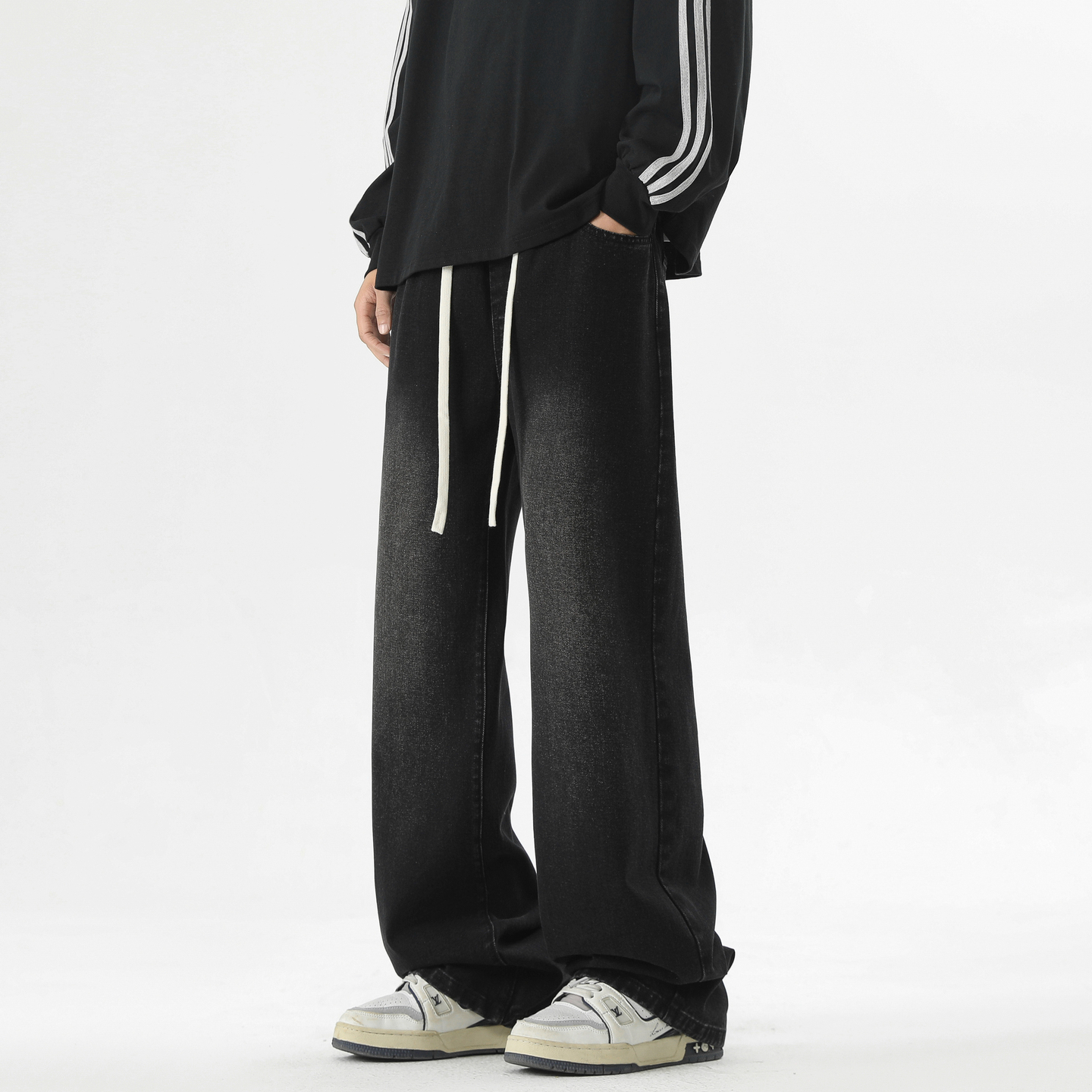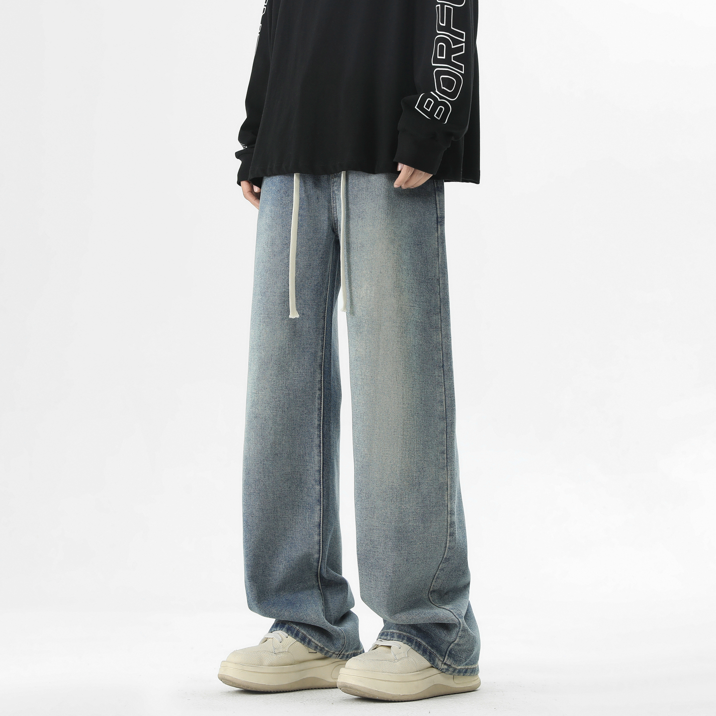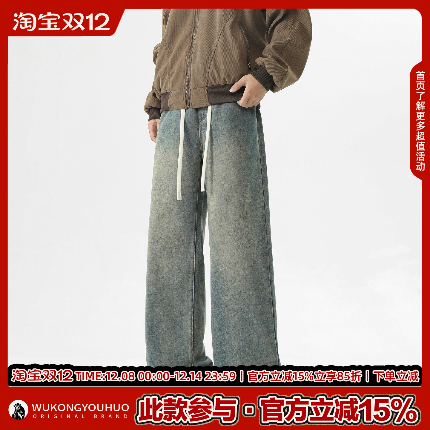 淘宝悟空有货潮牌美式水洗做旧抽绳牛仔裤男复古宽松潮流百搭阔腿长裤