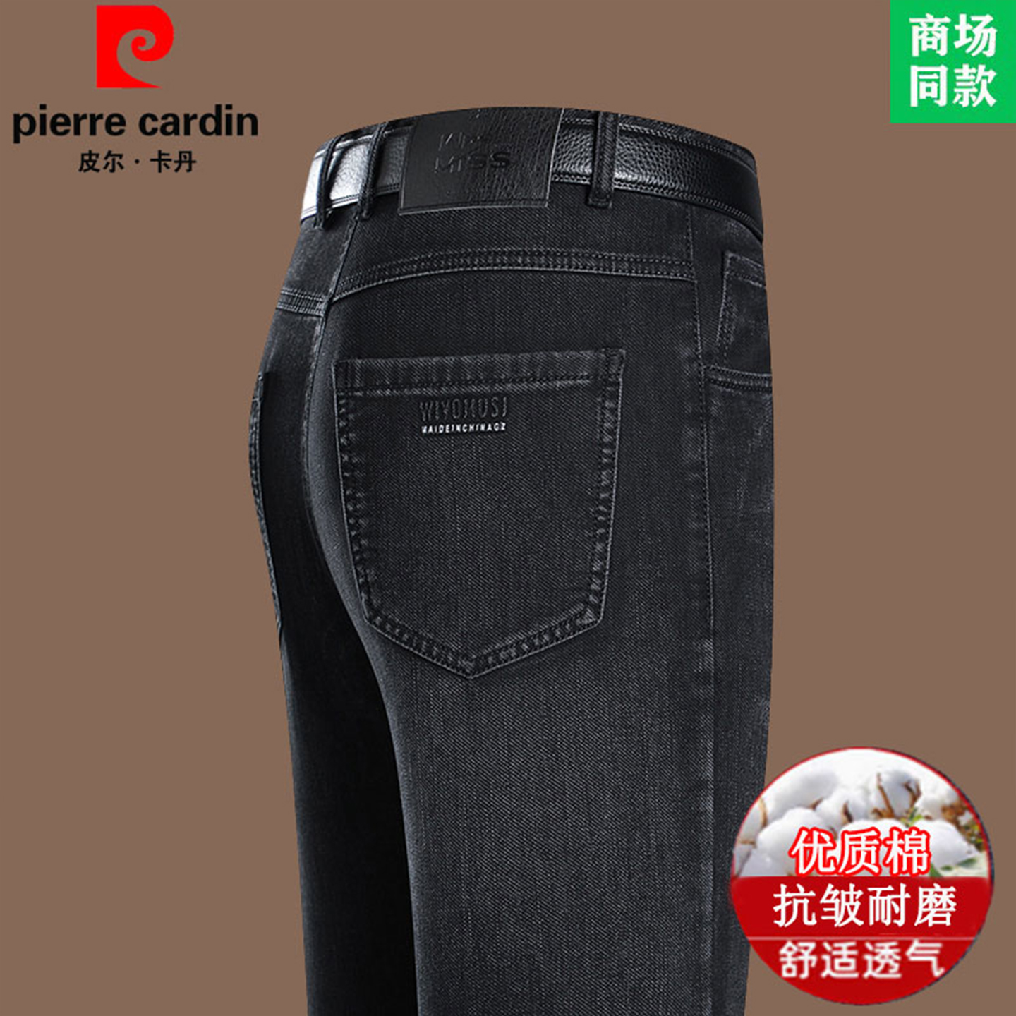 淘宝皮尔卡丹高端秋冬牛仔裤男宽松直筒高腰男裤商务休闲爸爸加绒裤子