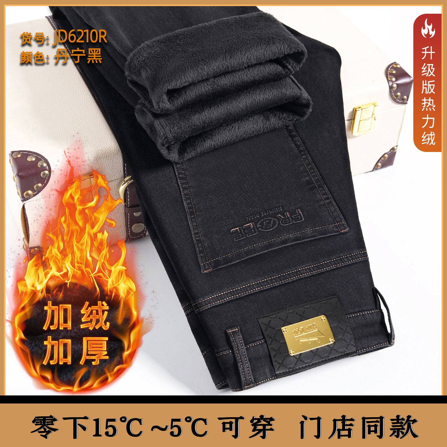 天【加绒加厚】九牧王男士2025秋冬新款弹力保暖弹力直筒蓝牛仔裤