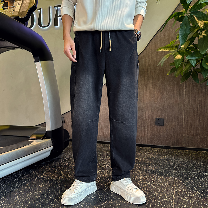 准者直筒牛仔裤男士秋季新款运动长裤宽松薄款透气百搭休闲裤子