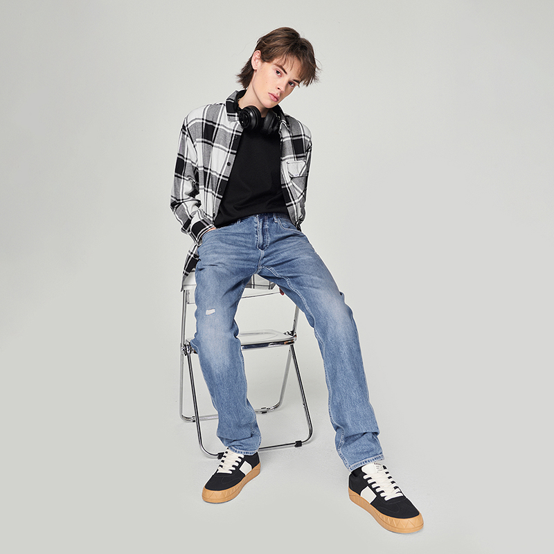 【商场同款】太平鸟男装水洗做旧牛仔裤秋新款直筒裤子B1HAF3233