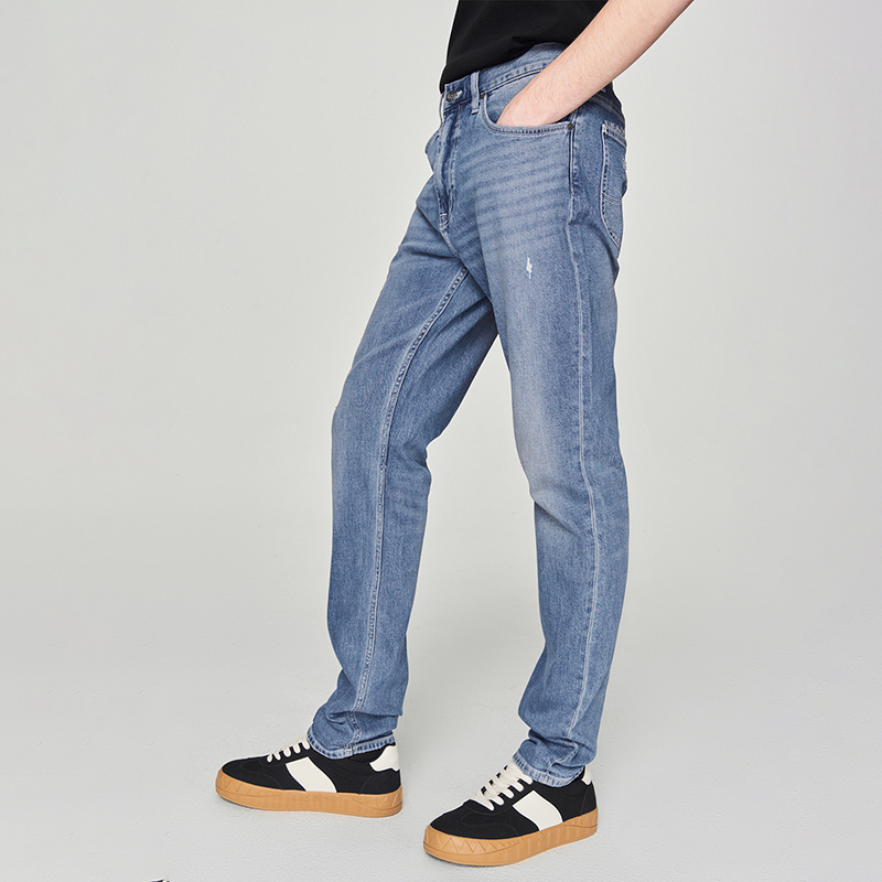 天【商场同款】太平鸟男装水洗做旧牛仔裤秋新款直筒裤子B1HAF3233