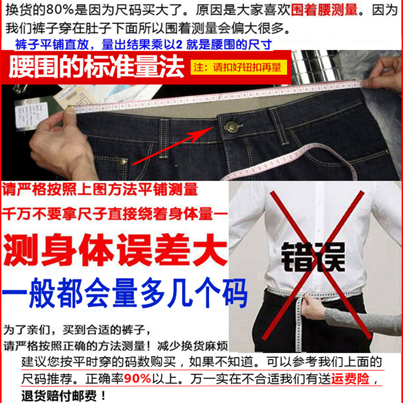 淘啄木鸟牛仔裤秋冬款加绒加厚弹力休闲裤男裤中年男士直筒宽松裤子