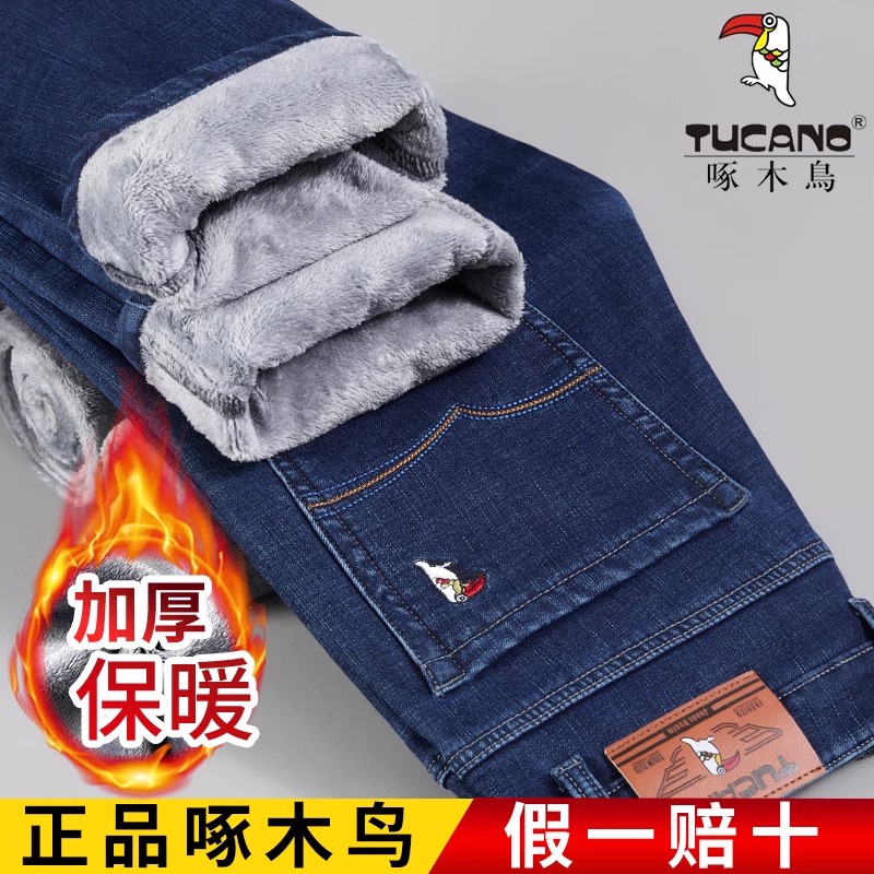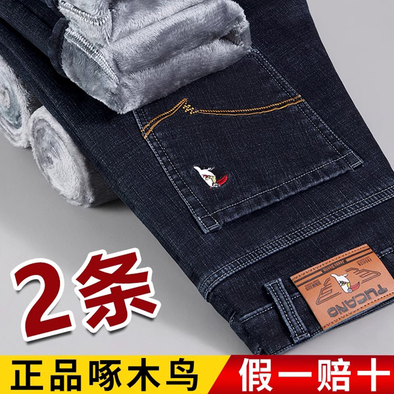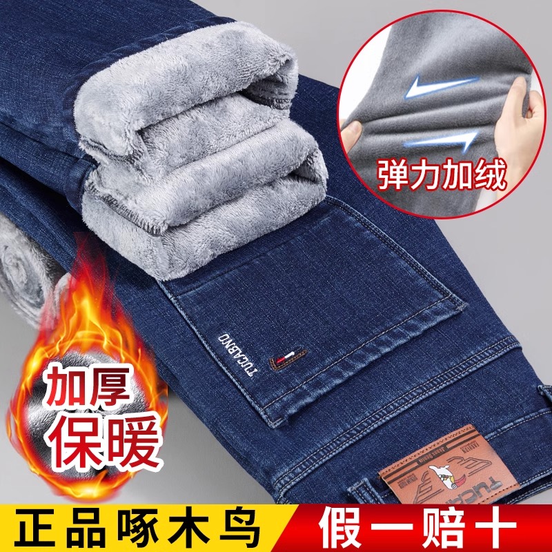淘罗蒙男士牛仔裤2025秋冬新款弹力直筒宽松商务休闲加绒加厚长裤子