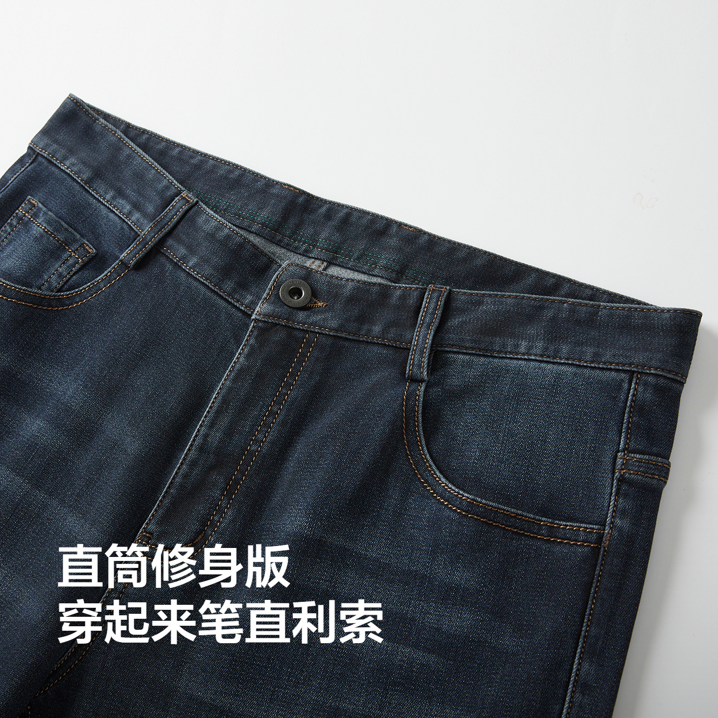 天猫【微绒加厚】红豆男装发热牛仔裤25秋季莫代尔直筒型有弹力长裤预