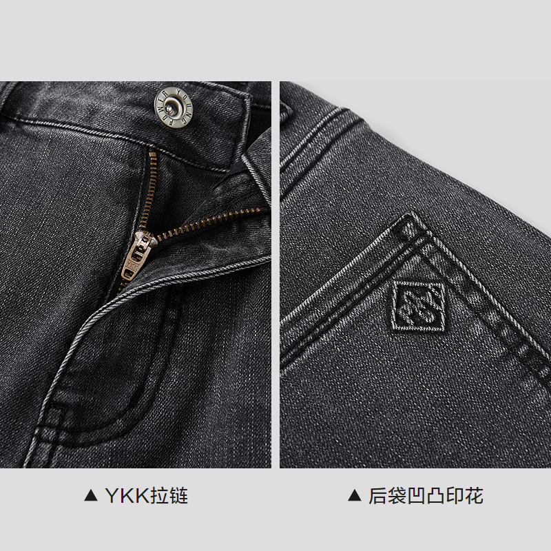 红豆加厚磨毛牛仔裤男士25秋季新品黑色复古休闲裤直筒长裤子