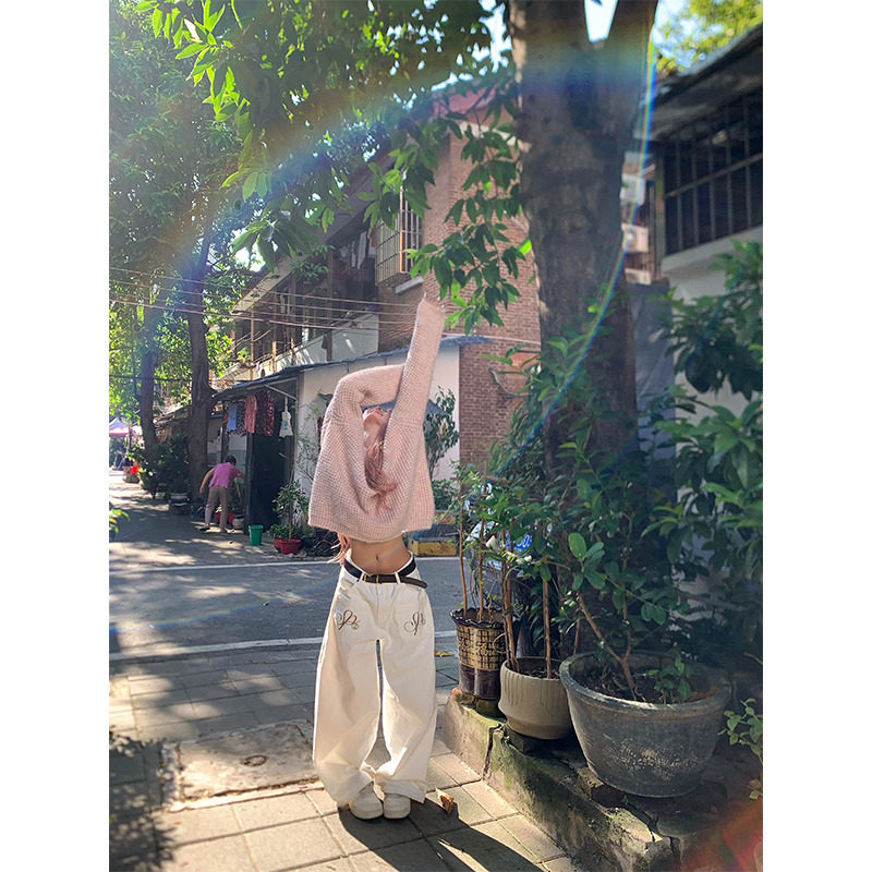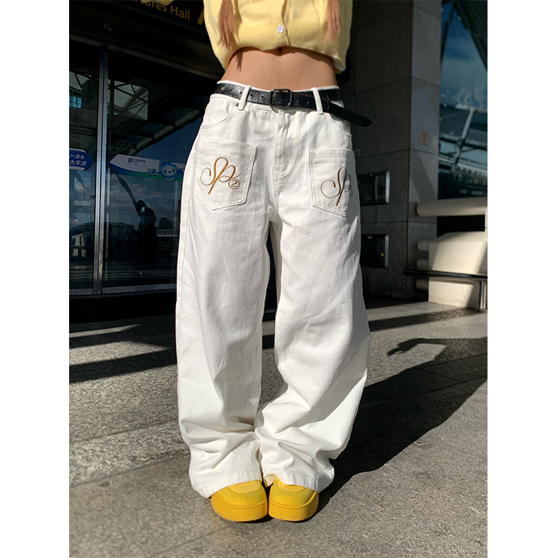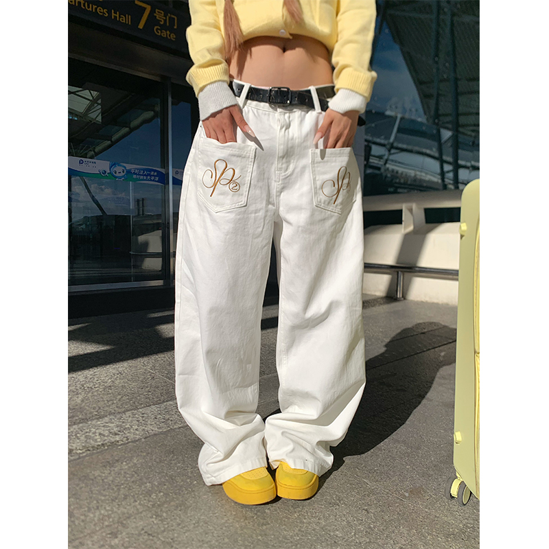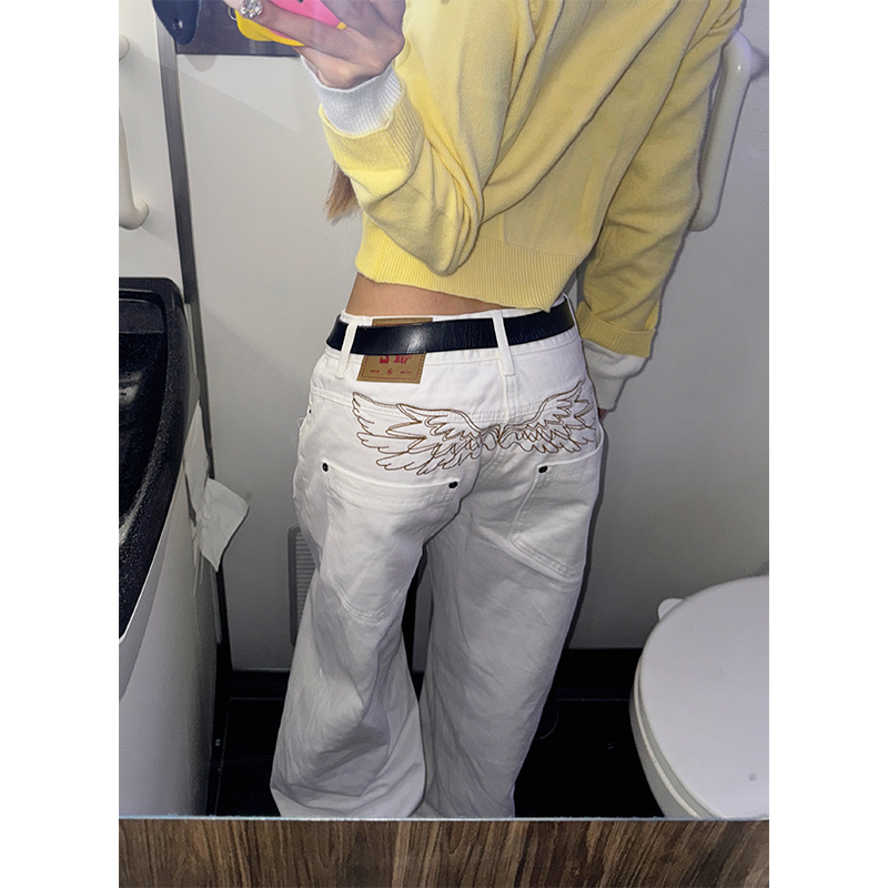 淘宝NECOYEP 美式复古字母翅膀刺绣直筒牛仔裤男女宽松休闲阔腿长裤潮
