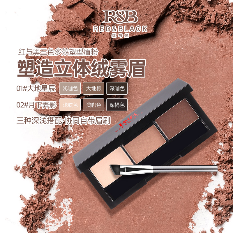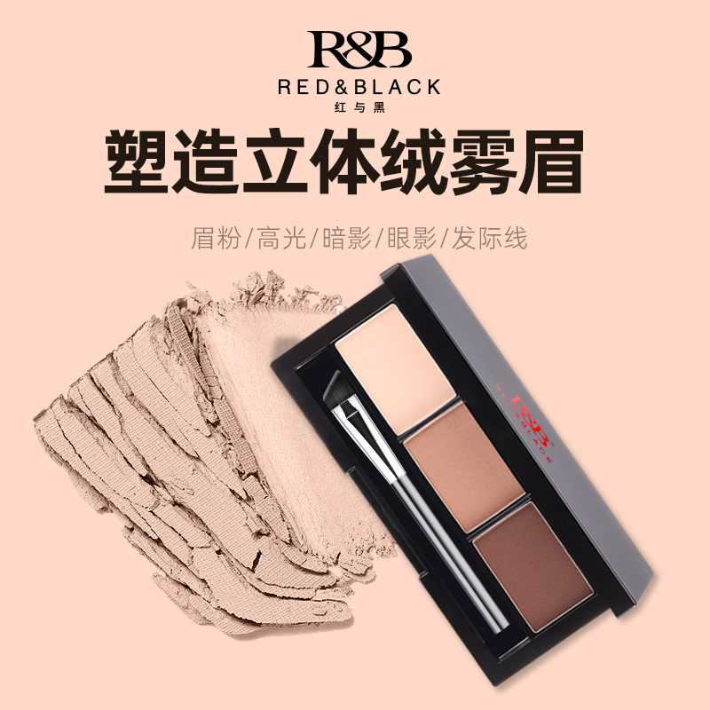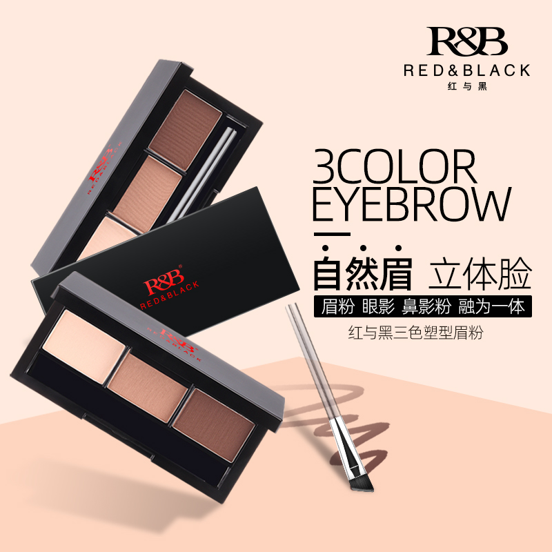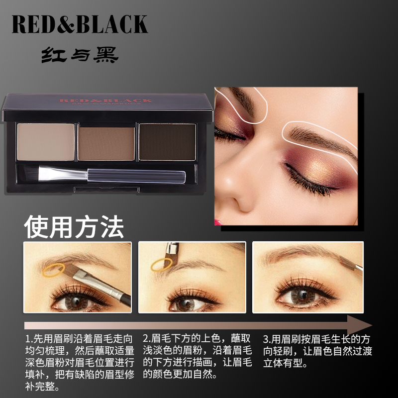 天猫红与黑三色眉粉盘防水防汗三合一鼻影修容眉笔立体造型持妆不脱色